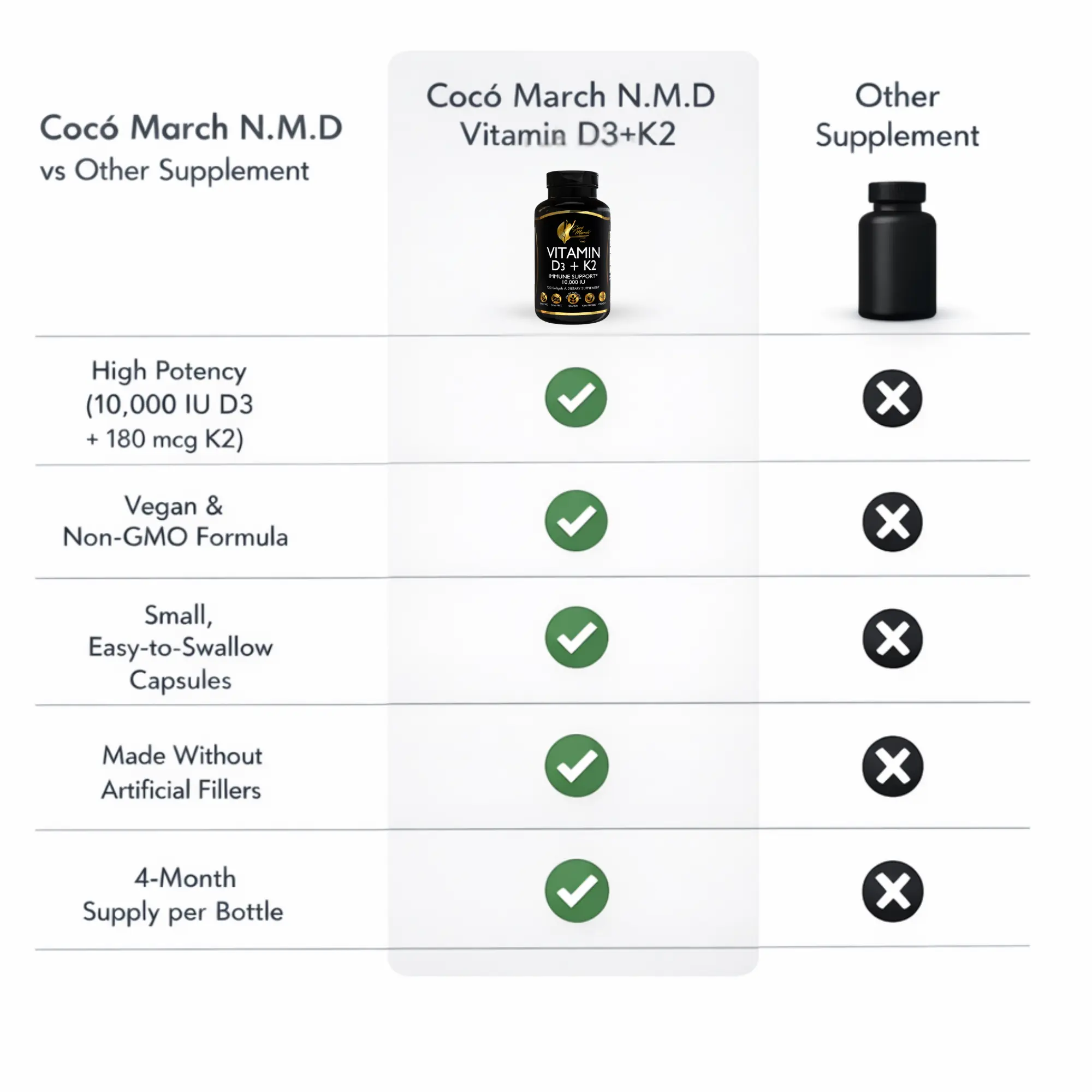 ·The Ultimate Nutrient Duo: Vitamin D3 boosts calcium absorption, while Vitamin K2 ensures it’s delivered to the right places—supporting stronger bones, flexible arteries, and overall vitality.