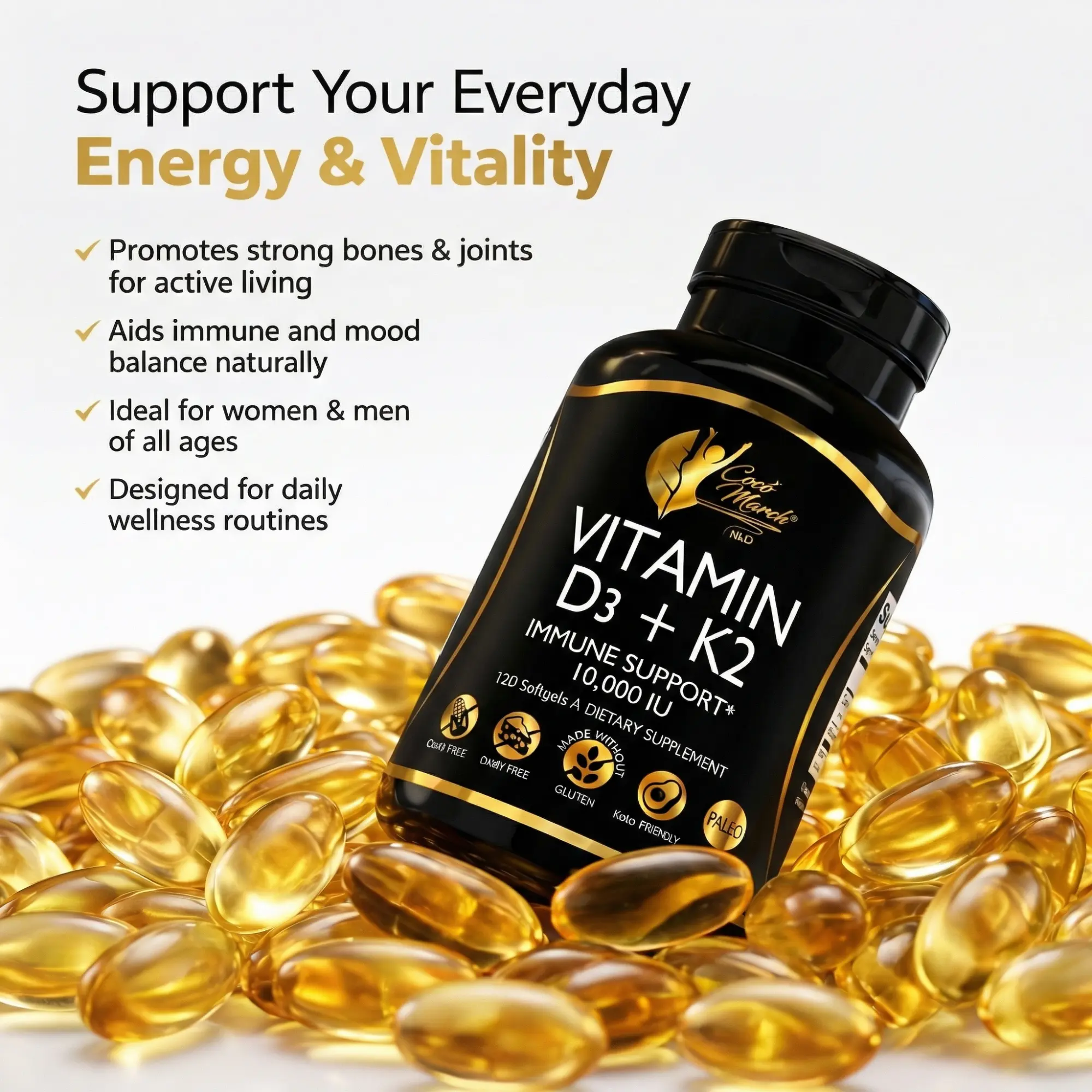 ·Stronger Bones, Brighter Smiles: Vitamin D3 and K2 join forces to support bone density and dental health, helping you stay active and confident at any age.