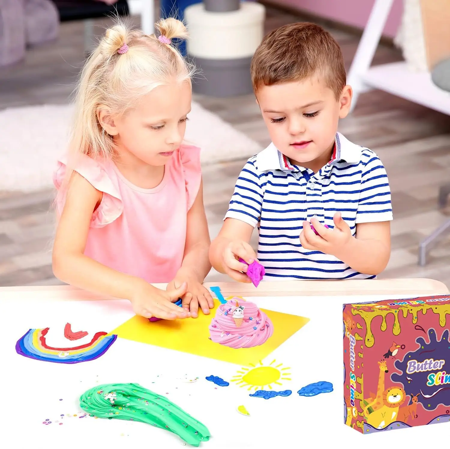 ·【Stress Relief Toys】The butter slime texture is soft and non-sticky, kids can relieve stress by stretching, kneading, squeezing, suitable for girls and boys. The slime stimulates kid's imagination, and the creation of slime improves children's hands-on ability