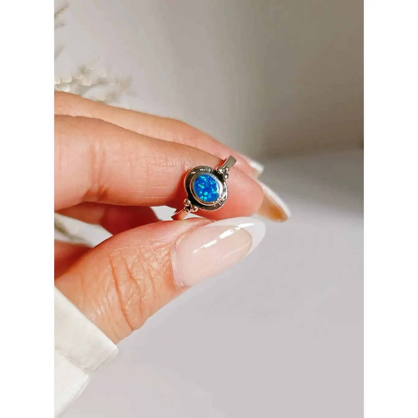 🌊 Beaded Blue Opal Sterling Silver Ring