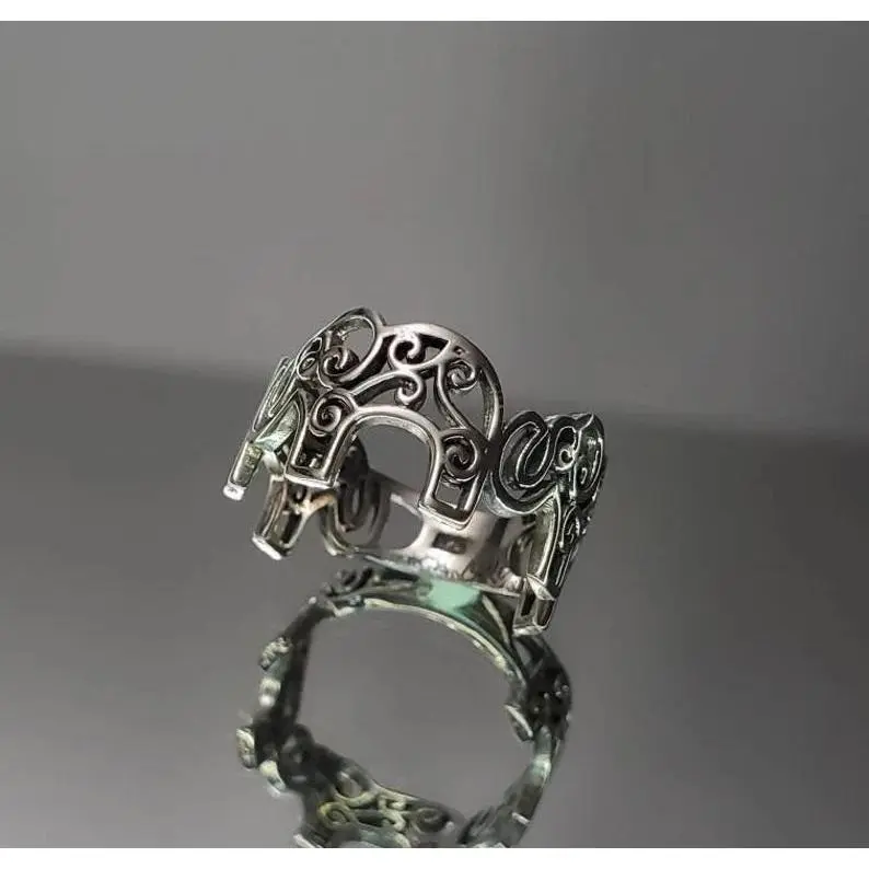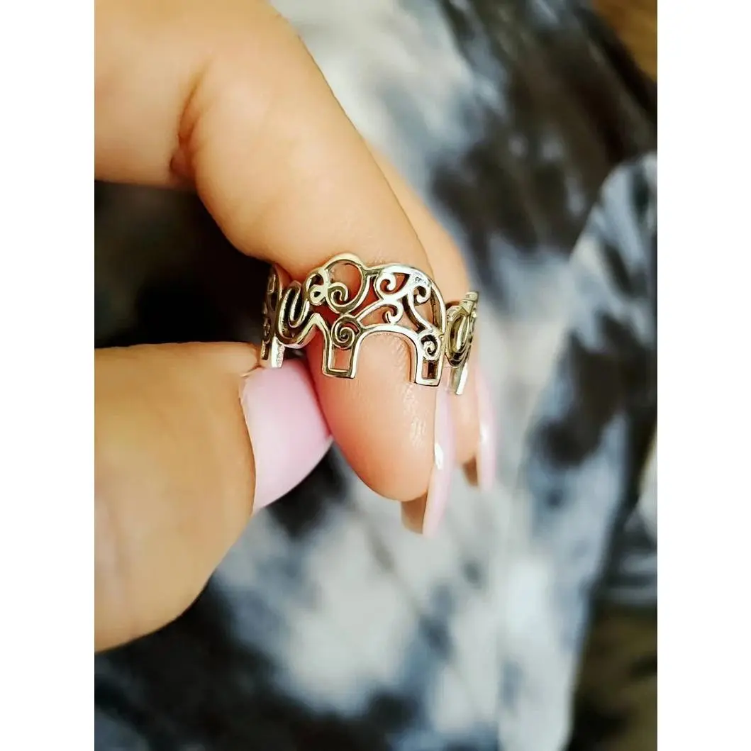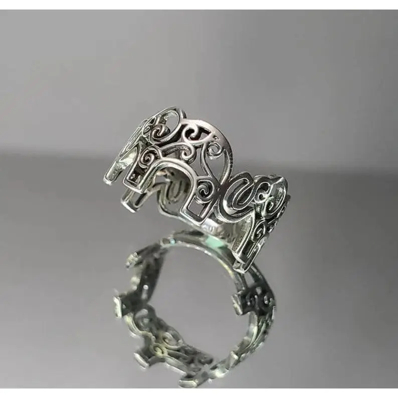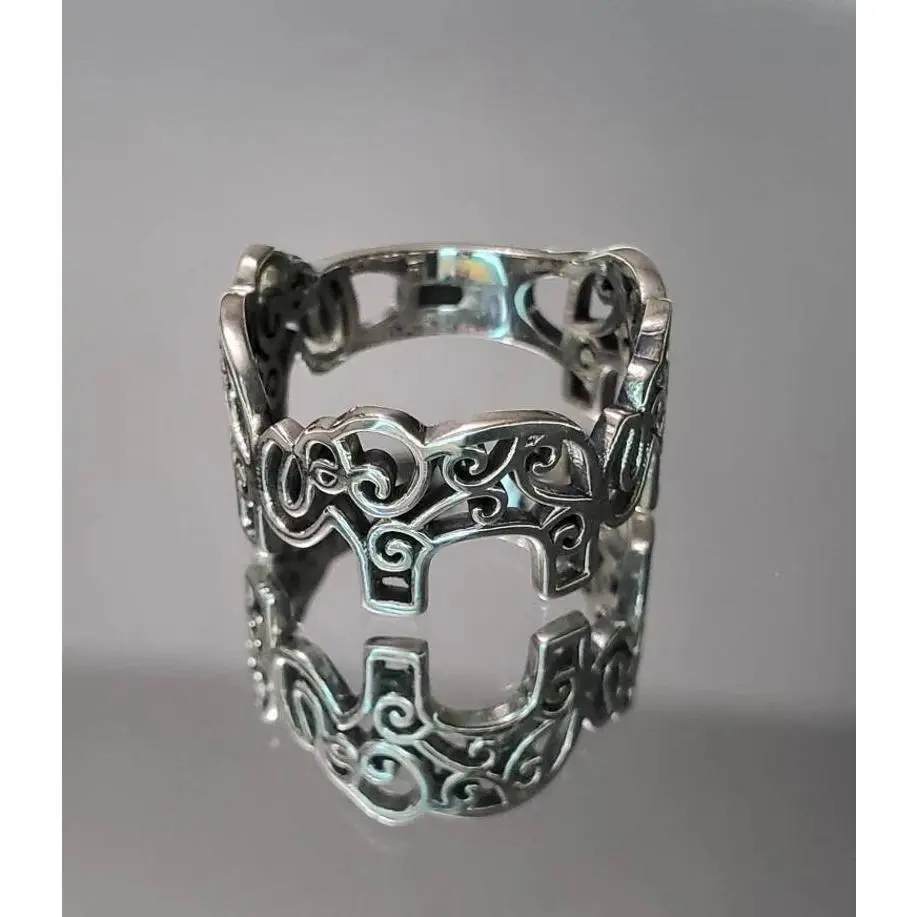 Celebrate the beauty of elephants with this Sterling Silver Elephant Ring. Its intricate filigree detailing reflects the majestic essence of these gentle giants. Perfect for meaningful, artistic jewelry lovers, it's a blend of elegance and strength, ideal for daily wear or special occasions.