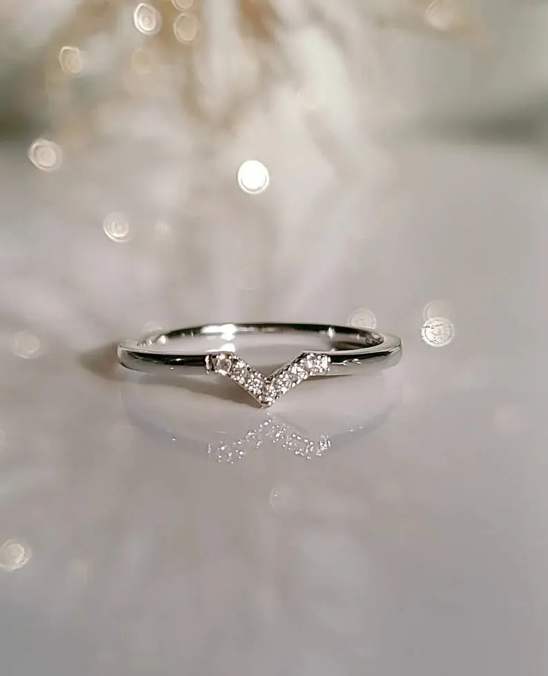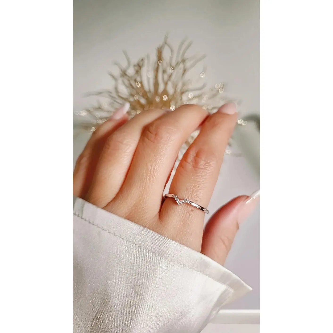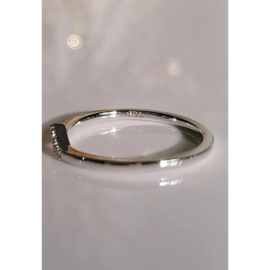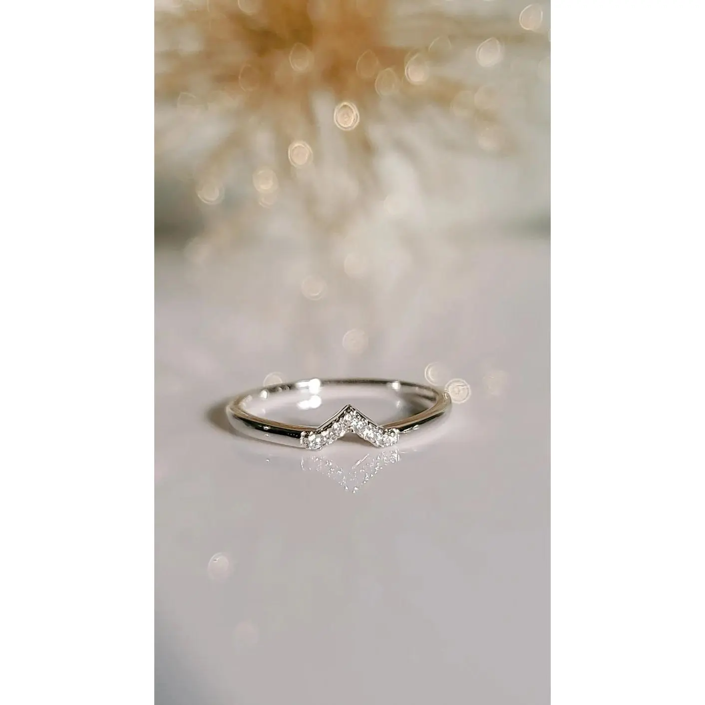 Sterling Silver Dainty Chevron Ring – 925 Stamped, Minimalist V Band, with Clear Cubic Zirconia