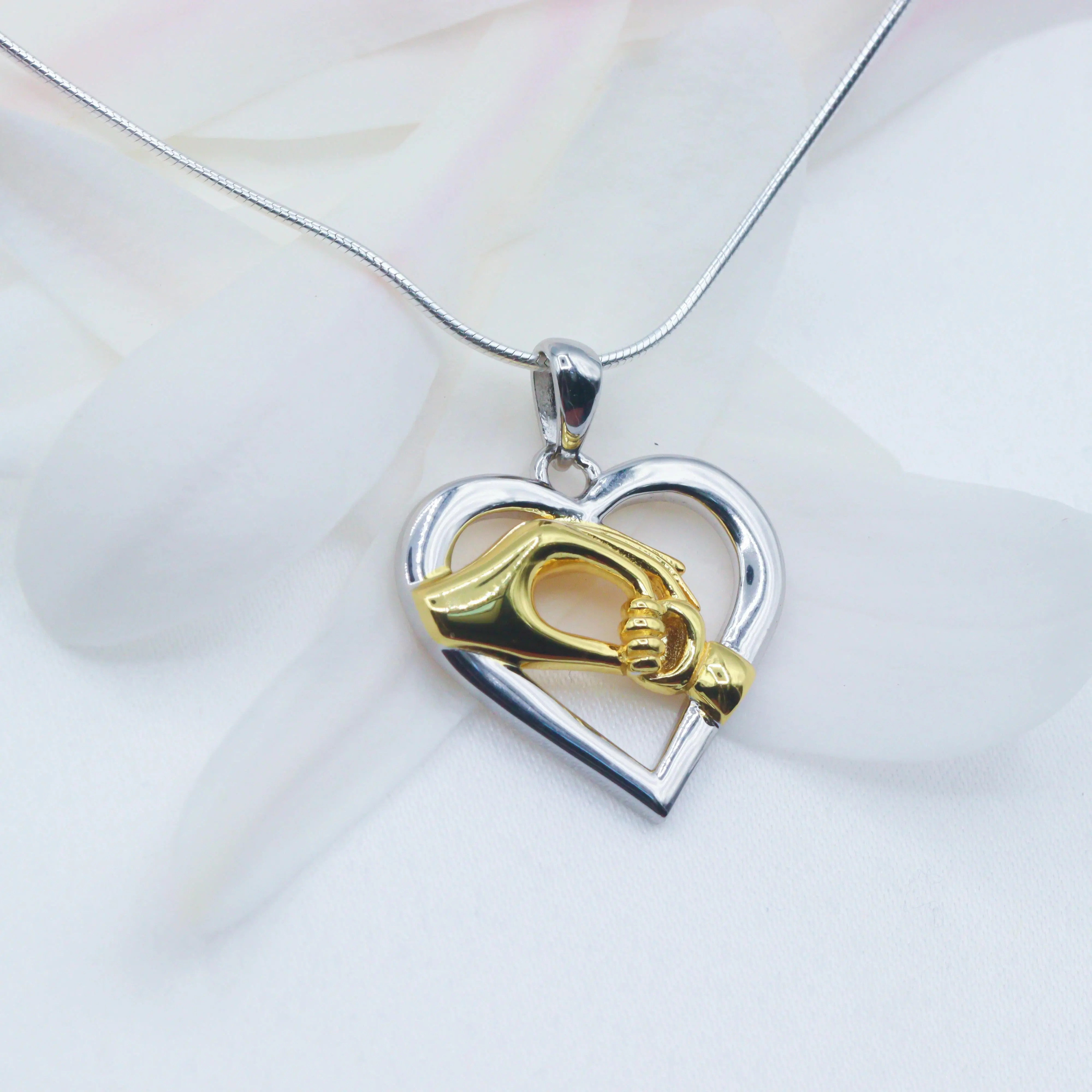 Show mom some love with this heartwarming necklace. Featuring a child holding mom's hands, this pendant necklace makes the perfect Mother's Day gift for her. Keep your family close to your heart with this sweet and sentimental piece.