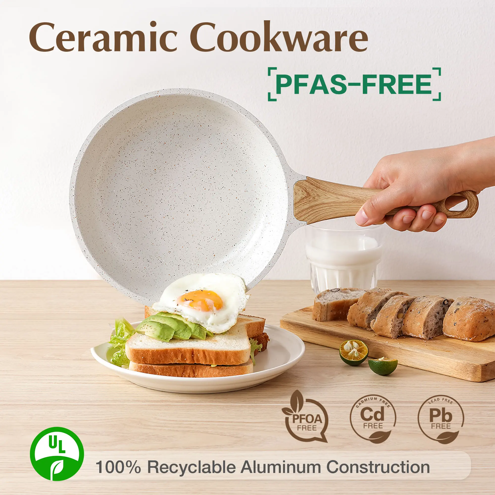 ·High-Performance Nonstick: Smooth ceramic surface, only need to put a little oil, and you can achieve 10X non-stick omelet results. The coating has passed 30,000 wear-resistant tests, which shows high performance in non-stick and wear resistance, and the coating does not fall off and is not easy to turn yellow.