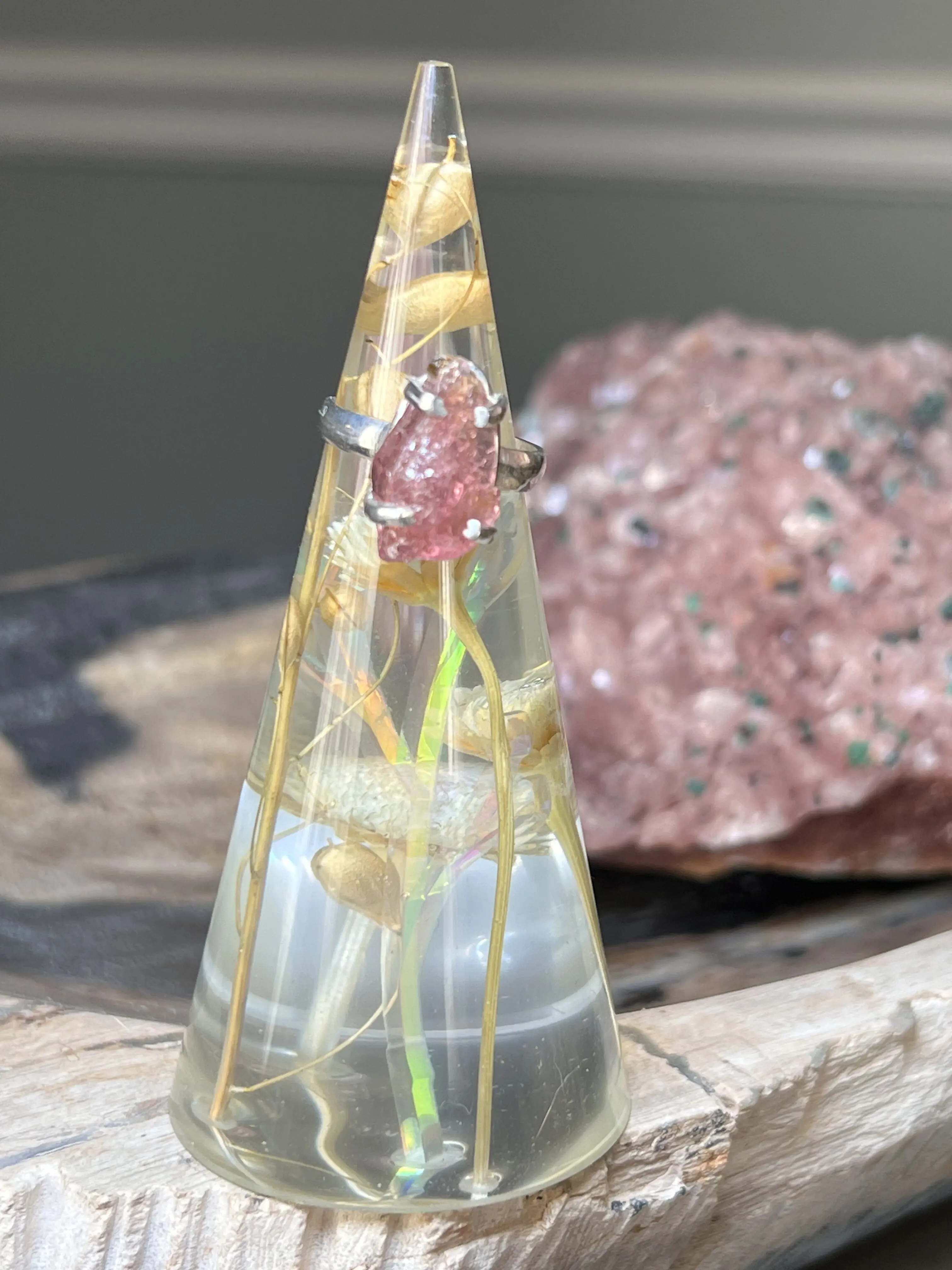 Brazilian Pink Tourmaline with 925 Sterling Silver - size 7