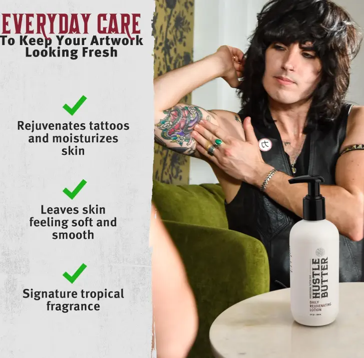 ·Tattoo Aftercare Daily Lotion: gives your tattoos the everyday care they deserve to keep your artwork looking fresh. Formulated to provide deep hydration and leave skin feeling soft and smooth. Rejuvenates your artwork and moisturizes skin.