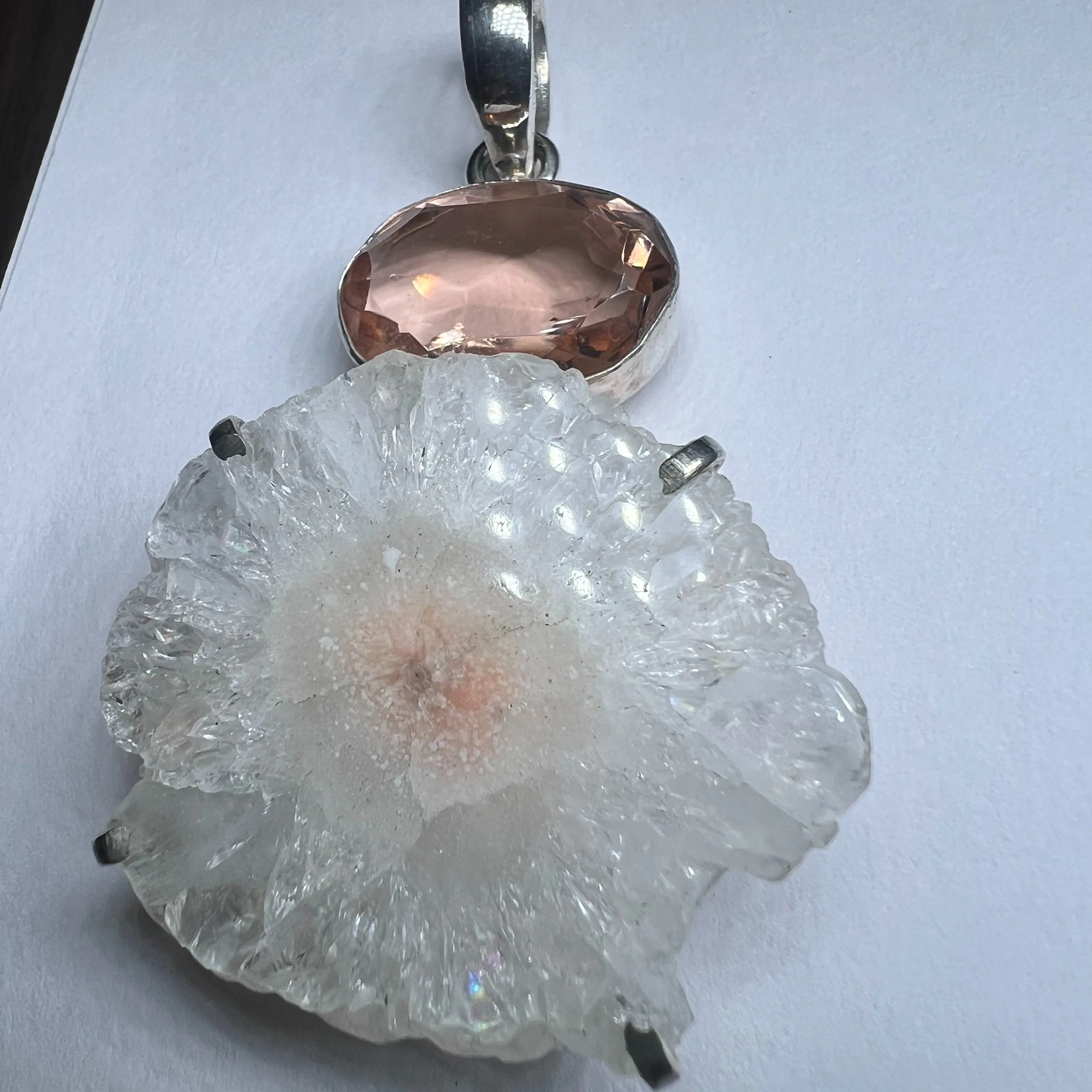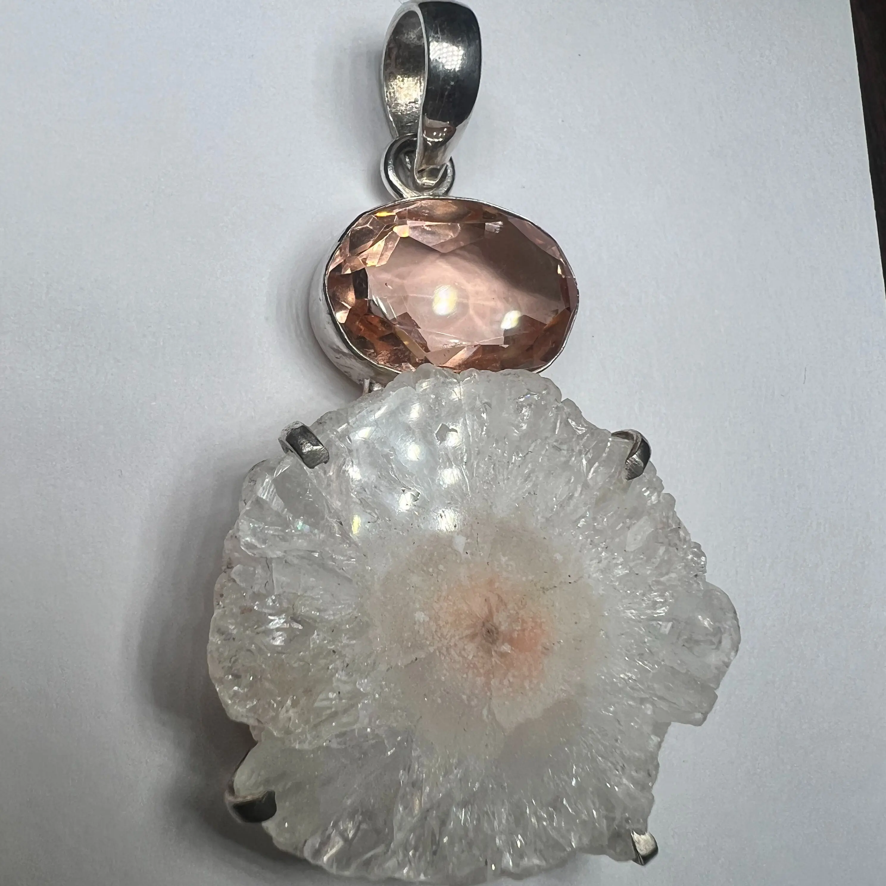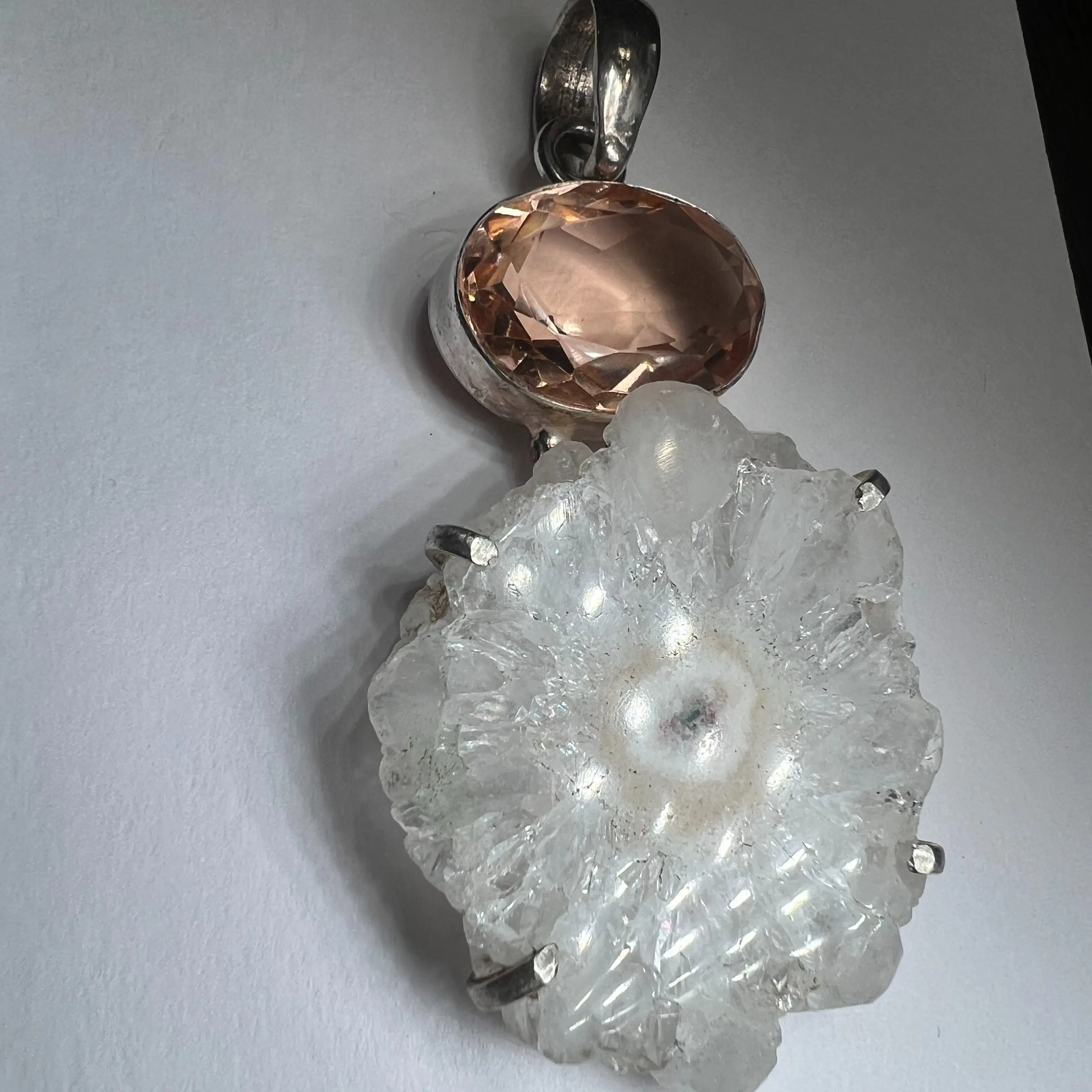 Solar Quartz Blossom & Peach Quartz Pendant - 925 Sterling Silver setting