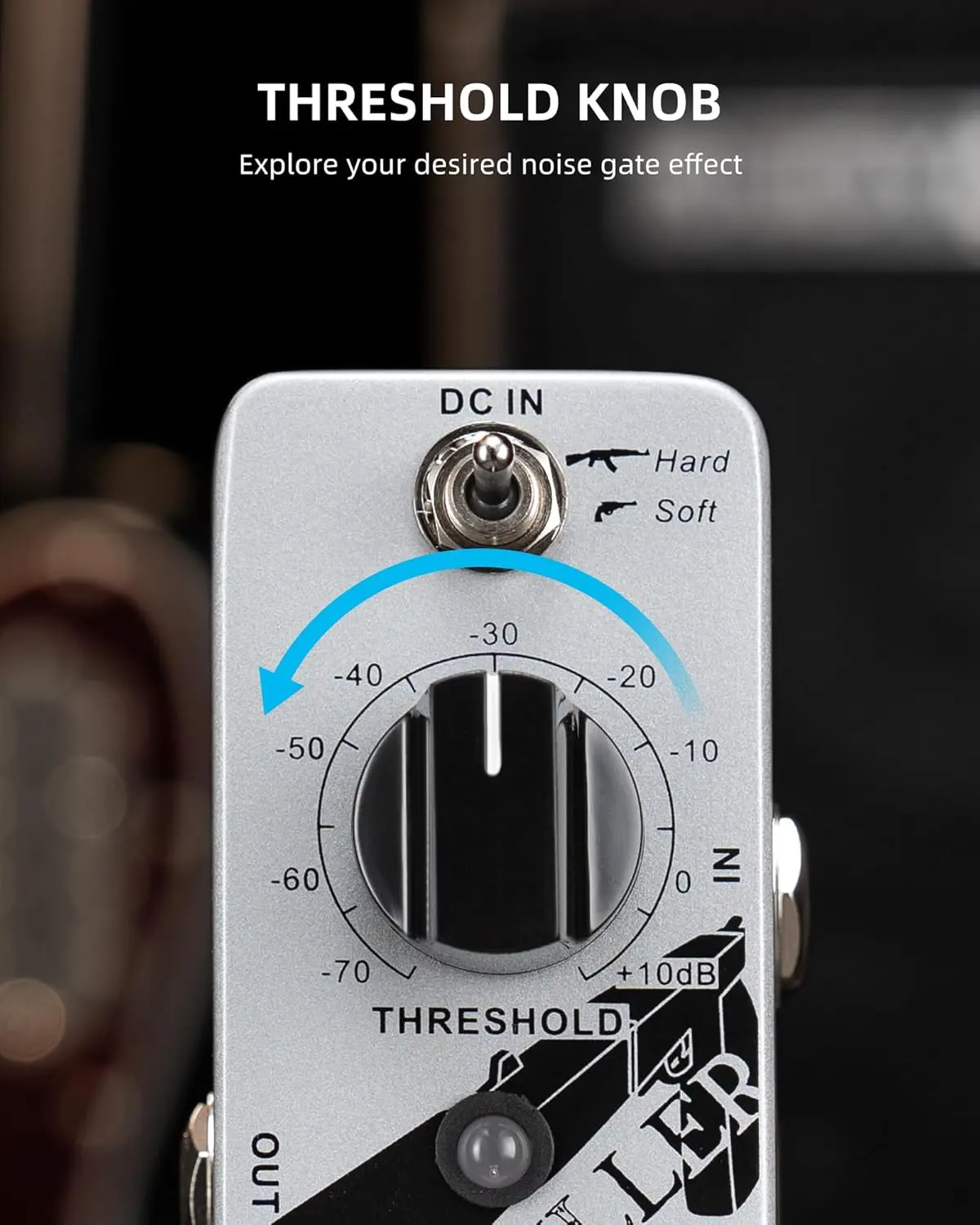 Explore your desired noise gate effect, threshold knob adjusting the noise reduction degree:-70—+10db, small noise killer pedals match your performance