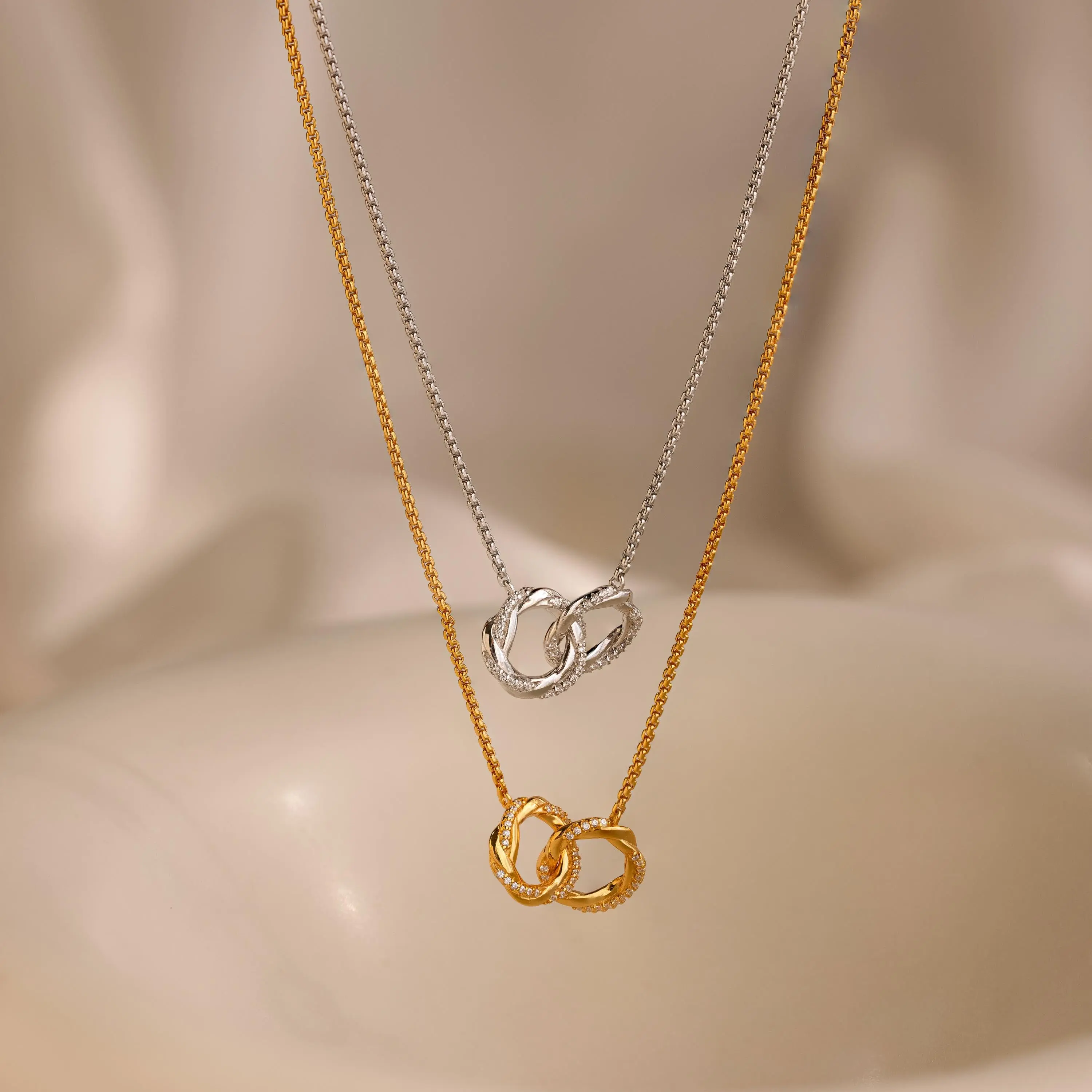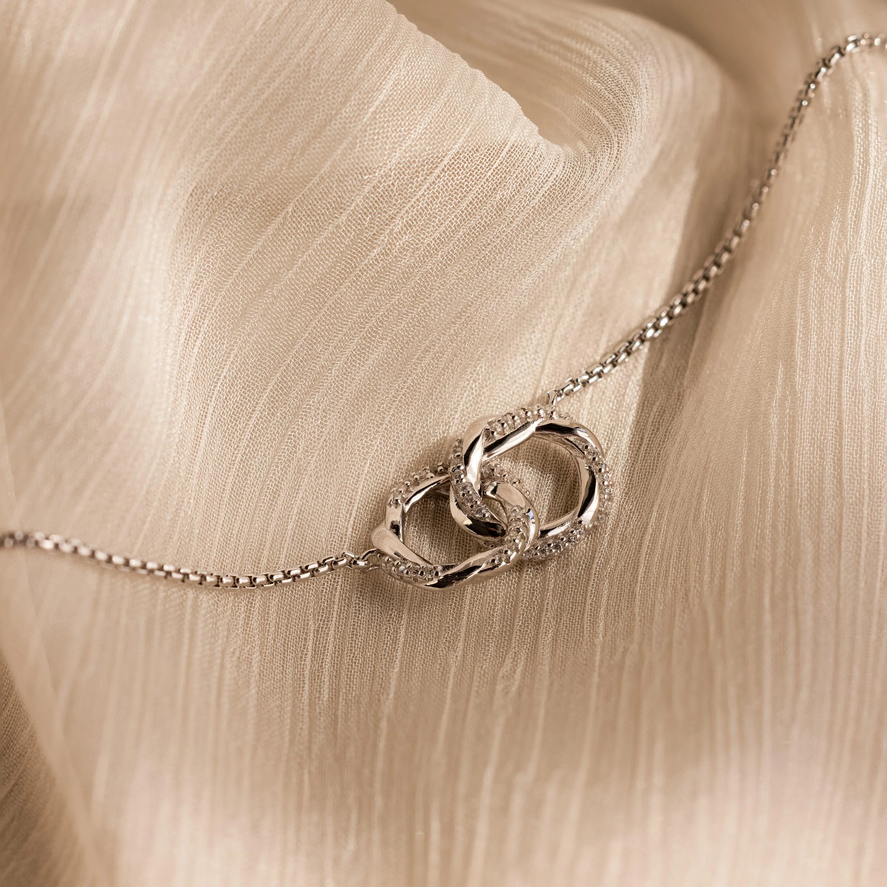 Our Interlocking Pave Charm Necklace blends vintage elegance with a dreamy touch, making it the perfect symbol of connection. With two pavé diamond-encrusted circles intertwined on a sleek box chain, this enchanting piece beautifully celebrates cherished bonds—whether it’s for friendships, engagements, or heartfelt mother-daughter moments ♡
