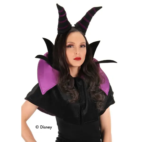 Drape yourself in a cape as dark as Maleficent's own with a luxurious black velvet exterior and a regal purple satin lining. The cape fastens at the neck with the ease of a hook and loop, ensuring an easy fit while atop your head, the plush, twisted horns emerge, secured on a steadfast headband, to complete the fearsome yet majestic silhouette.