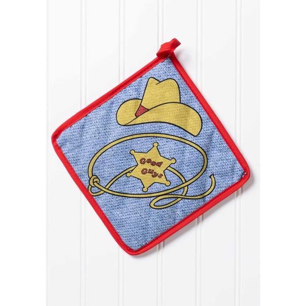 · Potholder and oven mitt have fabric loop on the corner for hanging up