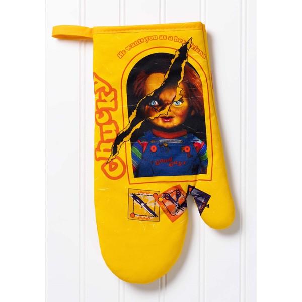 If you're a fan of the Child's Play franchise, then you already know that playing with Chucky isn't a very good idea. But most people don't know about his secret love of the culinary arts! When you bring home this Good Guys Chucky Kitchen Set, you'll be able to cook up something scary good. This set includes an oven mitt, apron, and potholder, and would make an excellent gift for any Child's Play fan!