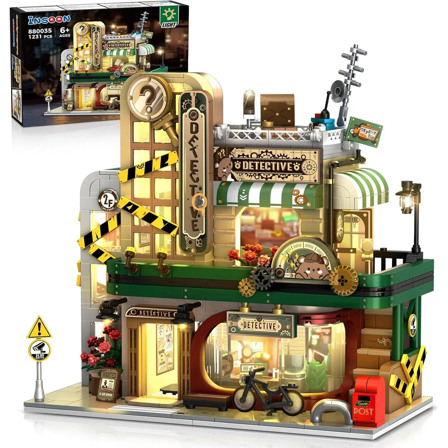 INSOON Detective Agency Building Block Set with LED Light for Adults Teens Kids Boys Girls 6 7 8 9 10 11 12+