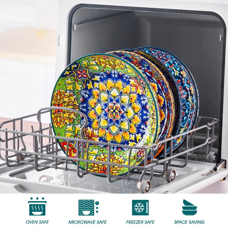 Vancasso Colorful Bowls Set is designed for easy maintenance. The smooth glaze on the plates makes them easy to clean, either by hand or in a dishwasher. They are also microwave-safe, allowing for effortless reheating of leftovers or warming up of dishes, providing practicality alongside their beauty.