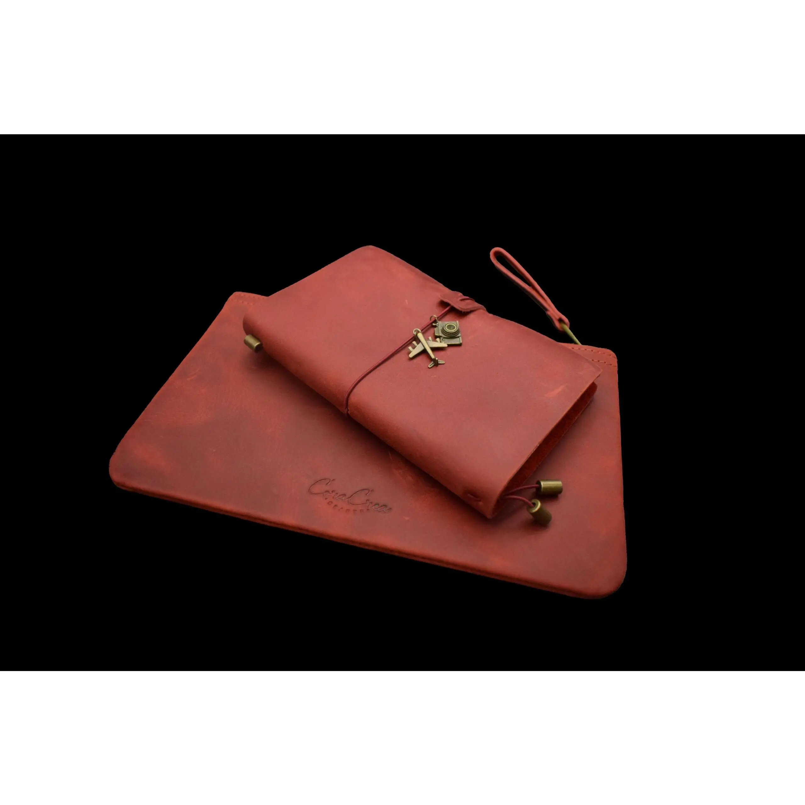 These high quality handmade leather journals and zipper pouches are a special edition designed by CoraCreaCrafts and created exclusively for our shop.