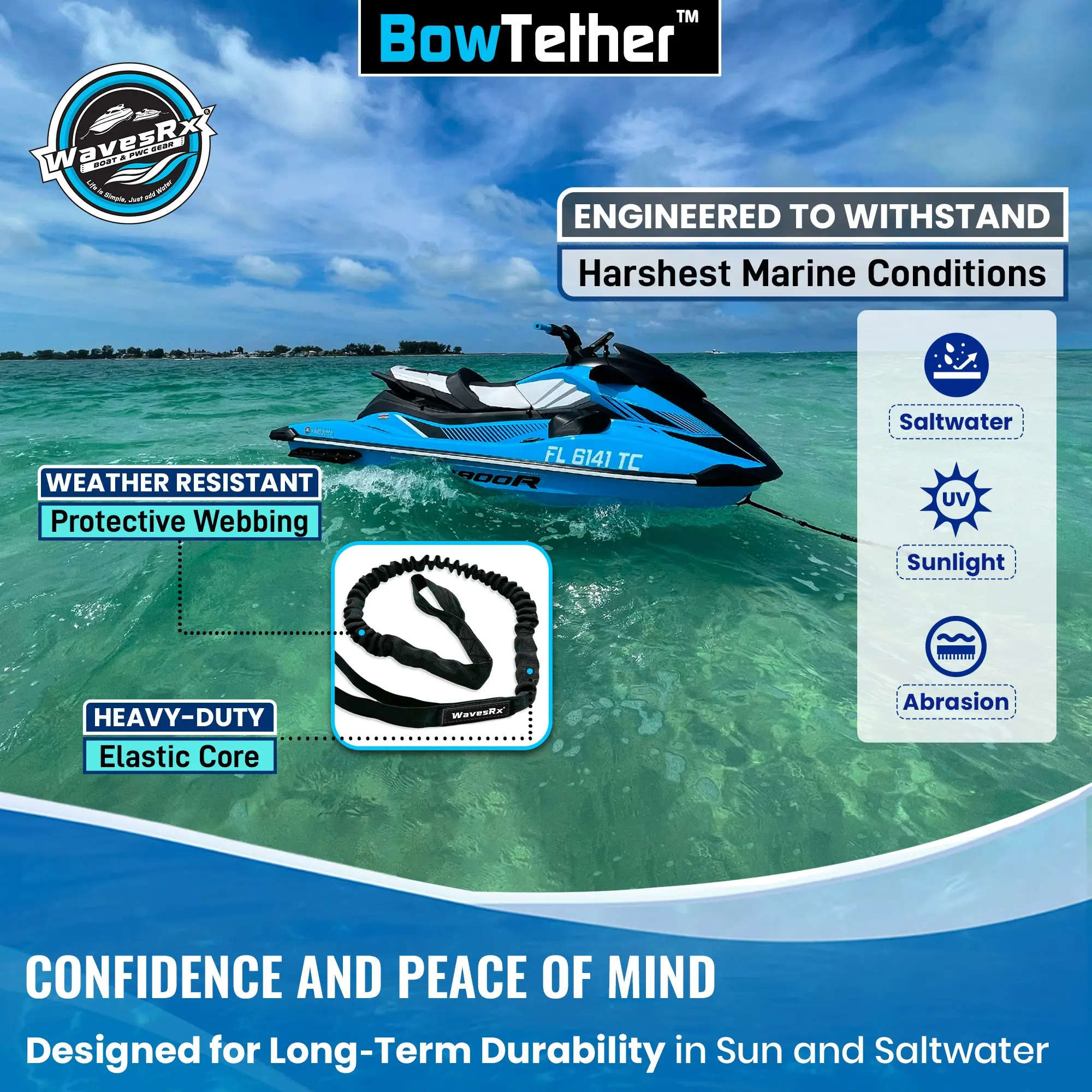 BowTether Bungee Bow Rope for PWC Anchor | Easy Jet Ski Anchoring from Bow | Stretches from 4ft to 6ft to Absorb Swells and Wind Gusts | Loops for Secure Attachment to Bow Eye and Side Mirror