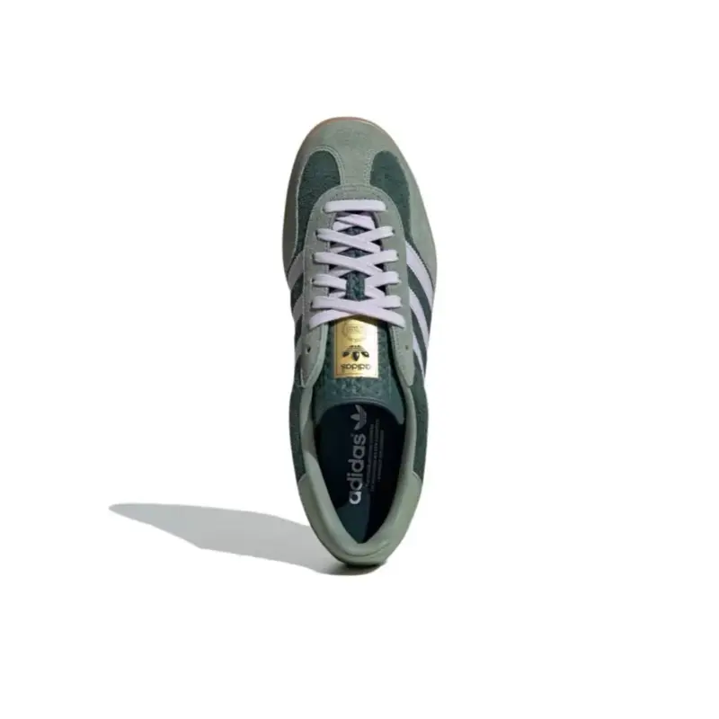 The adidas Gazelle Indoor Mineral Green Silver Dawn updates a classic indoor silhouette with a premium suede upper accented by mineral green overlays and subtle silver dawn detailing. Its retro-inspired design is refreshed with modern flair, perfect for stylish indoor play.