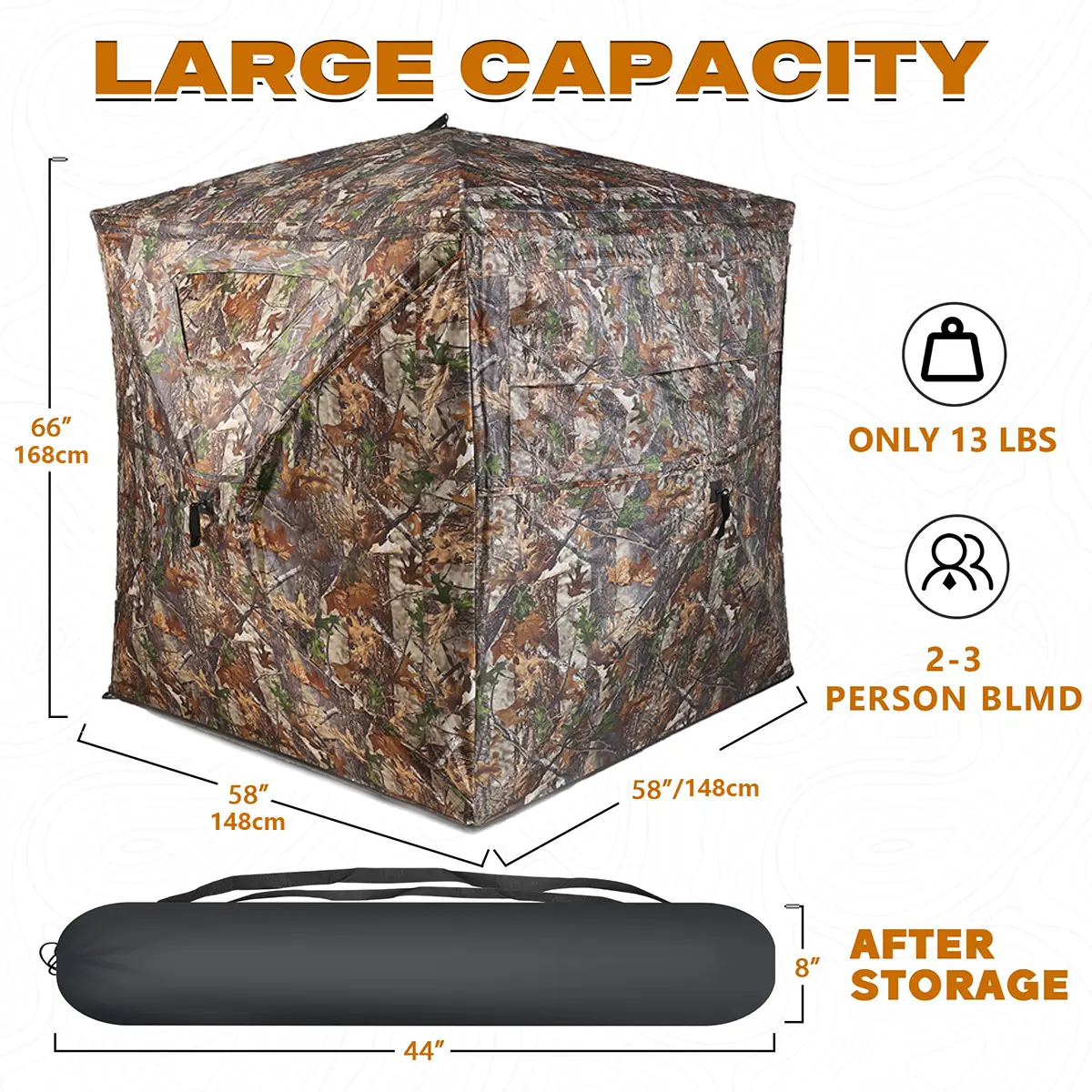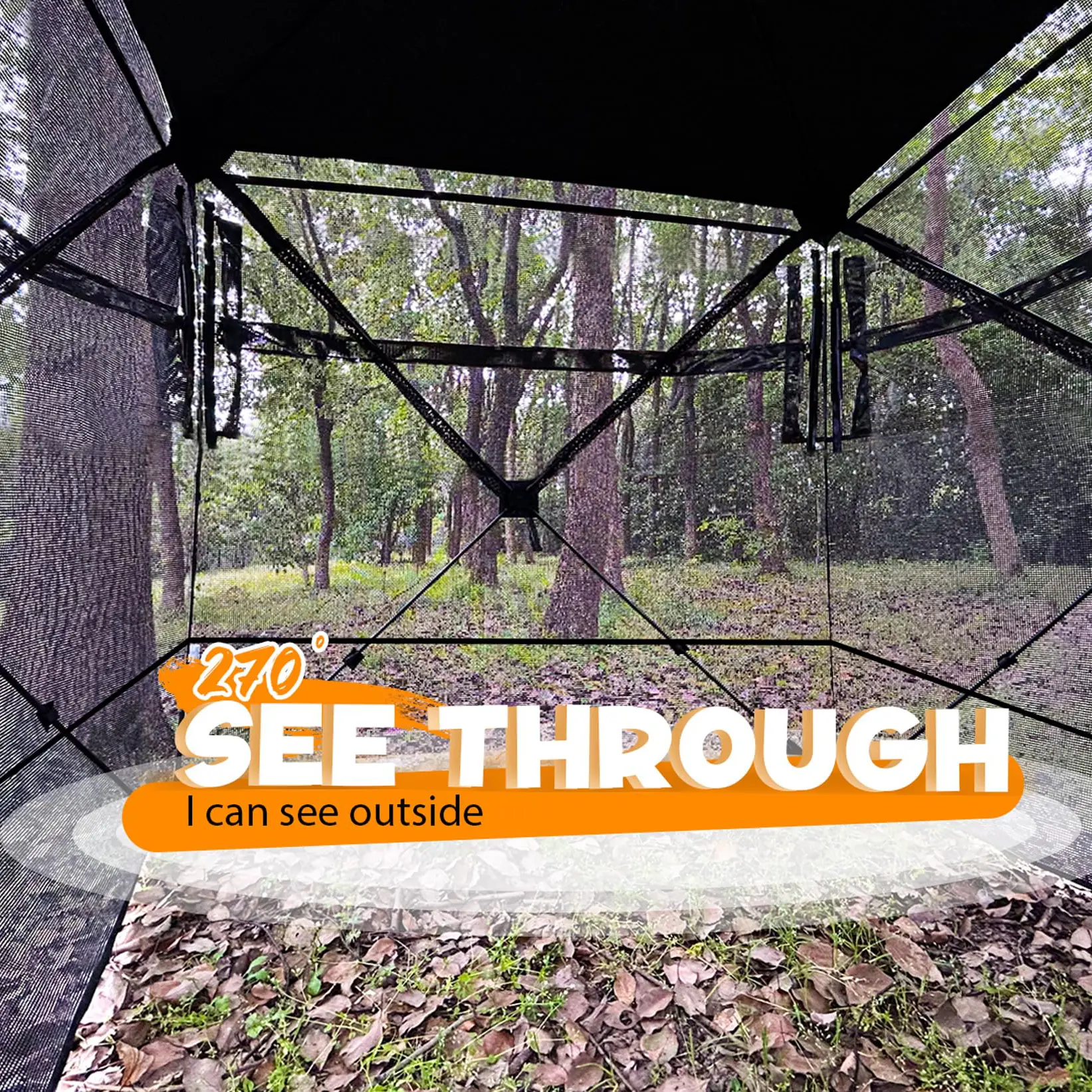 Hunting Blind 2-3 Person with Portable Hunting Chair, 270 Degree See Through Pop up Ground Blinds for Deer Turkey Duck Hunting, Bow Hunting Adjust Windows with Silent Zipper