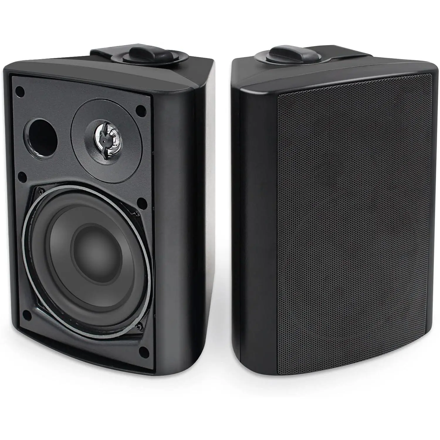 【Versatile Swivel Brackets 】:Making sure you were able to place your bluetooth outdoor speakers in your most desired location we added easy install swivel brackets that allow up to a 120 degree range of motion while the front facial can rotate up to 90 degrees. Ensuring easy placement and focused sound quality where you want it