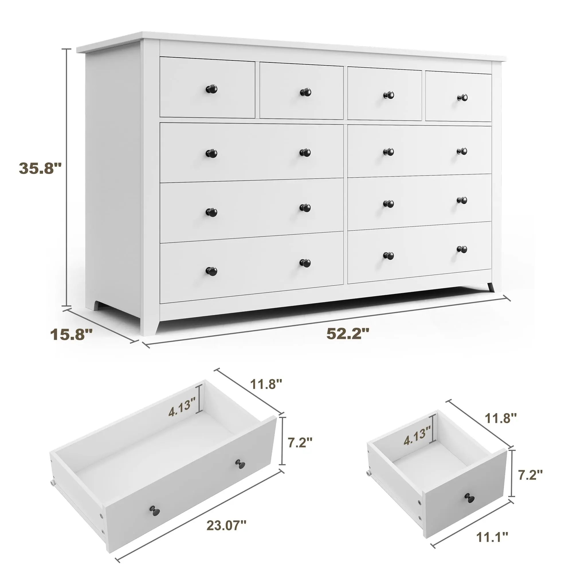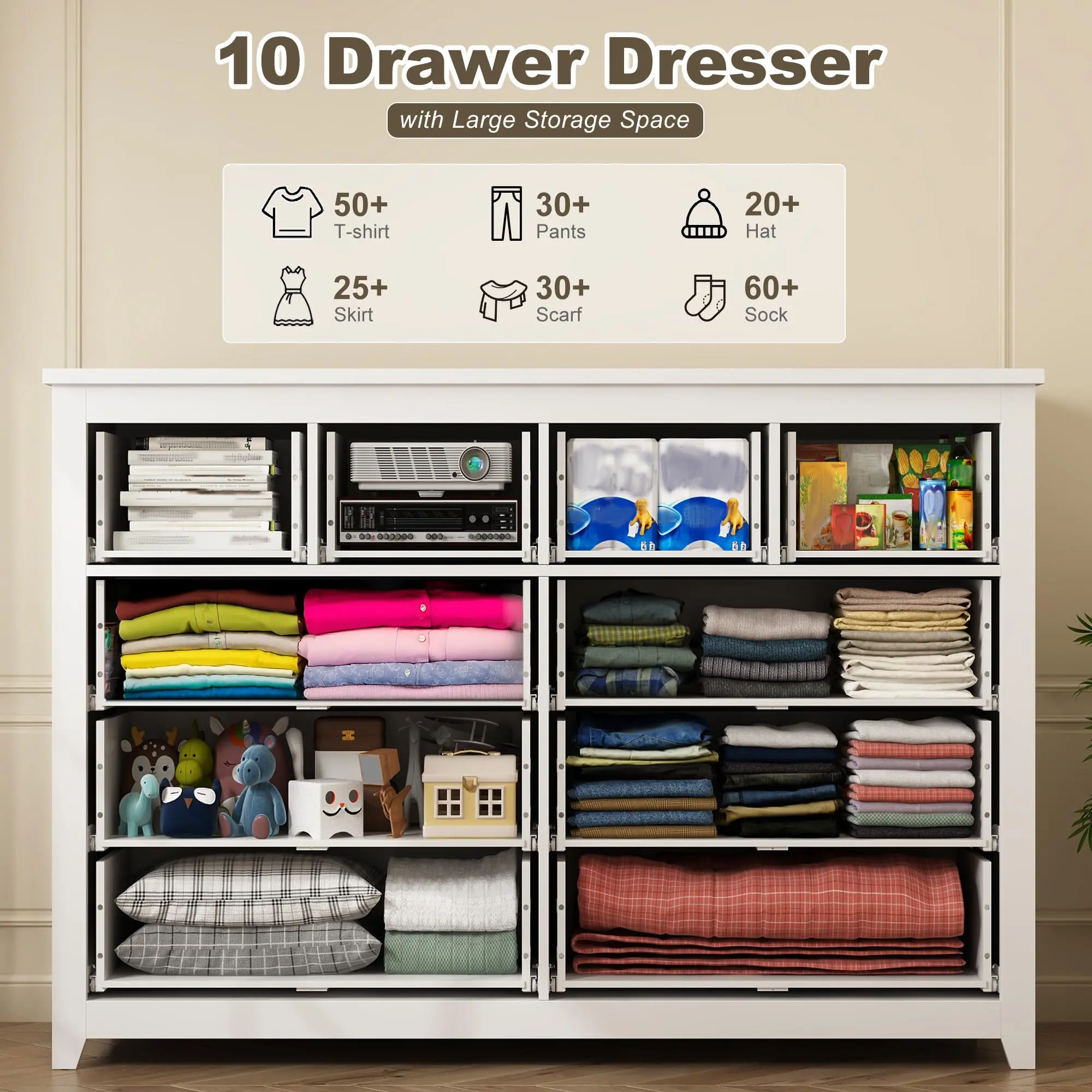 ·Spacious Storage Solution---With 10 drawers (6 large and 4 small), this dresser offers ample space to organize clothes, and other essentials, while the wide top provides a display area.