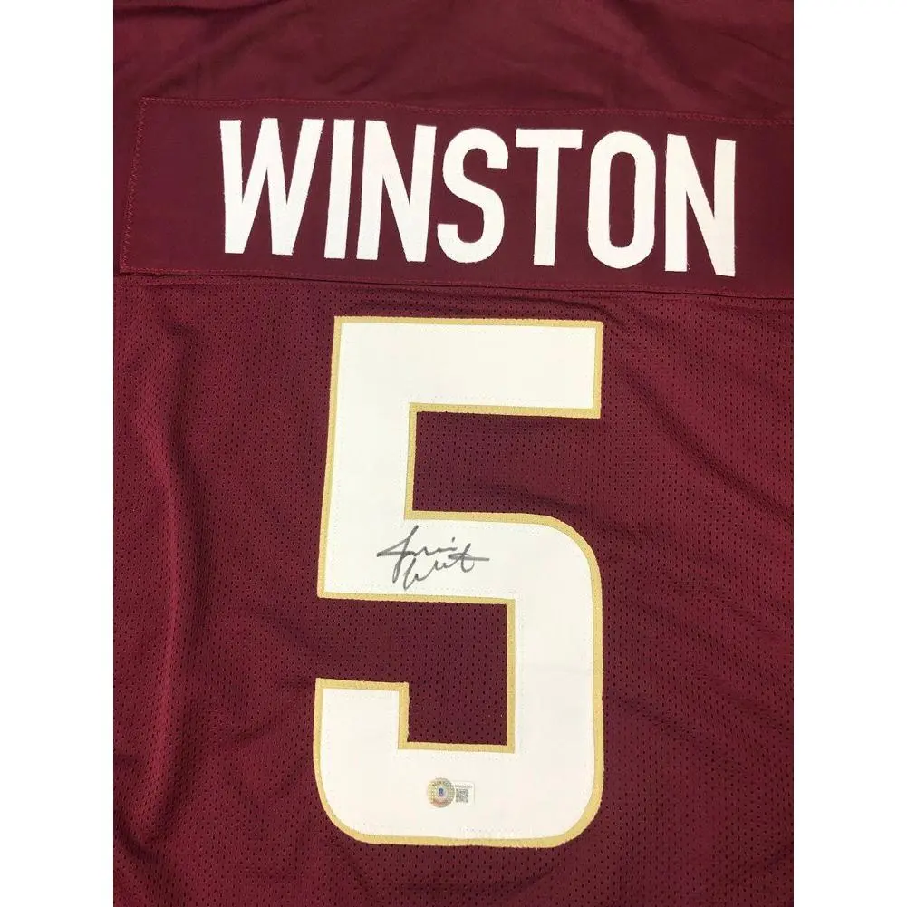 This Jameis Winston Autographed Florida State Seminoles Custom #5 Garnet Jersey - Beckett QR Authentic is an Excellent Piece of Sports Memorabilia for any Jameis Winston Fan or Collector in Your Life! Shop with Confidence knowing your Jameis Winston Autograph is Authenticated by BAS and the Certificate of Authenticity is Included with Your Purchase! Items Ship Quickly and Securely!
