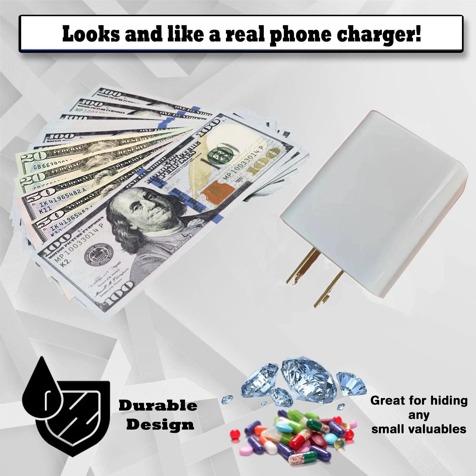 Phone Charger Diversion Safe - Realistic Looking USB Charger with Storage Compartment | Cash Can Items Hidden Compartment Storage Hiding Places