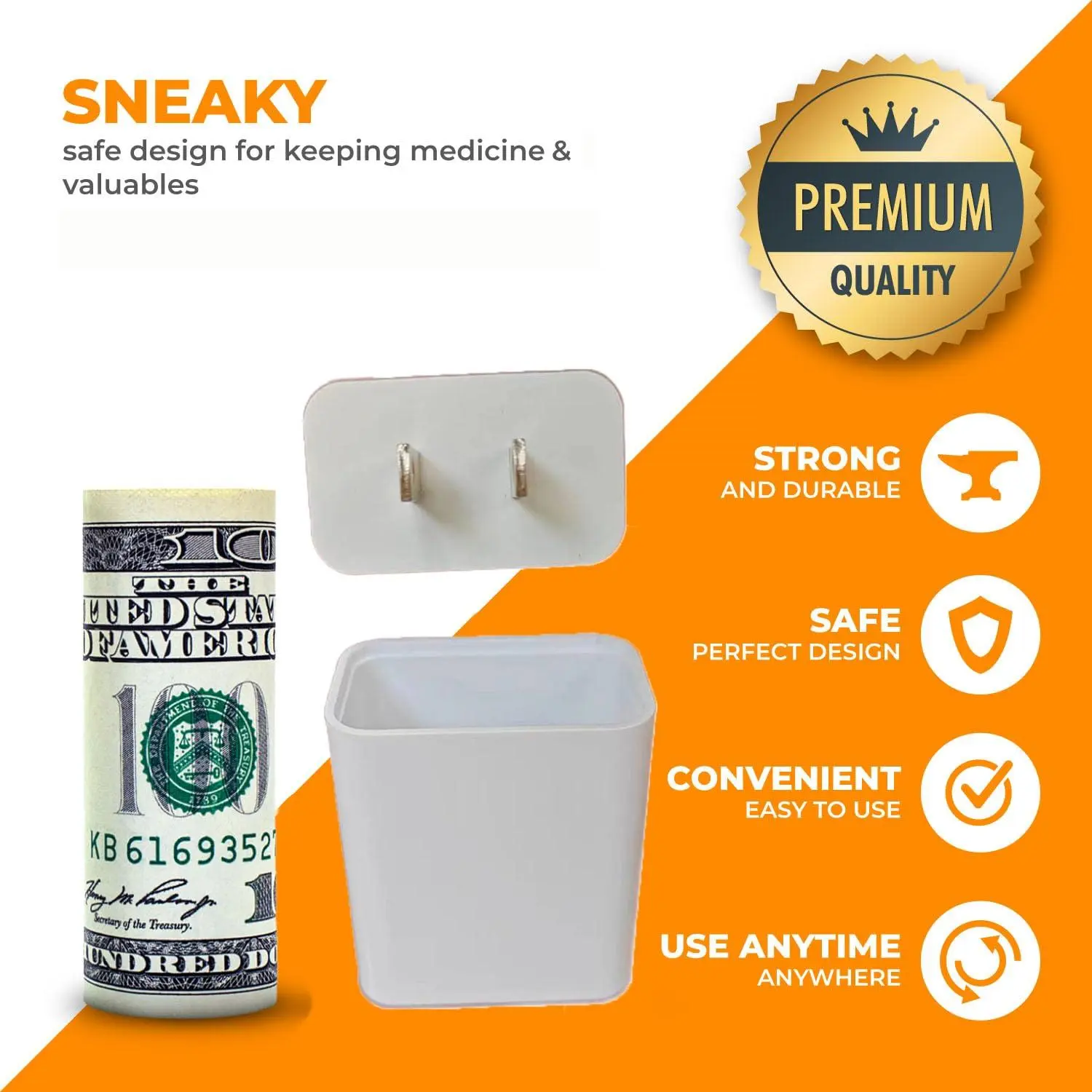 ·Feel secure in knowing that your valuables are hiding in plain sight. This ingenious design gives you quick access to any small item you want readily available, but never found.