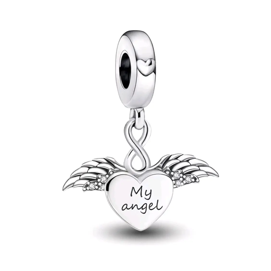Heidy Claddy Heart Charm with Angel Wings, 925 Sterling Silver, Features "My Angel" Text, Simple Design