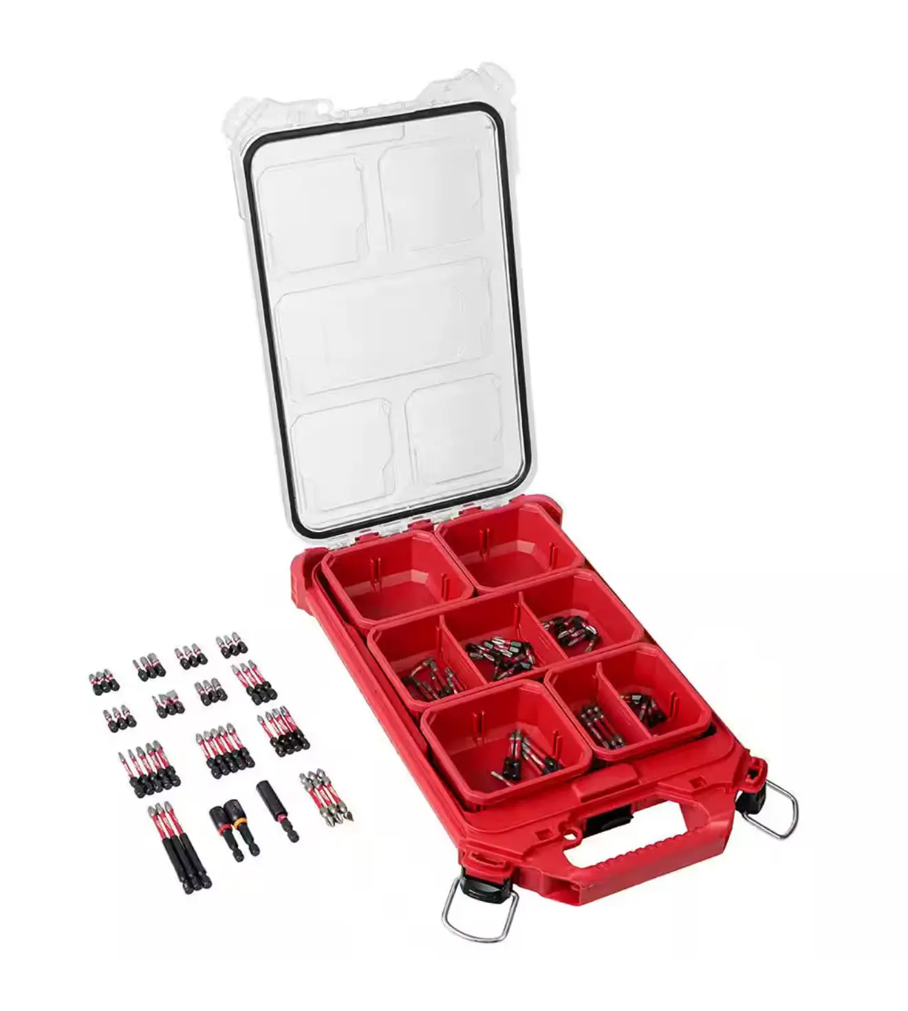 This Milwaukee Combo Kit includes a 100 Piece SHOCKWAVE Impact Driver Bit Set and a PACKOUT Compact Low-Profile Organizer.