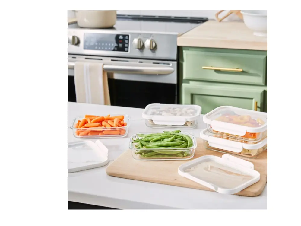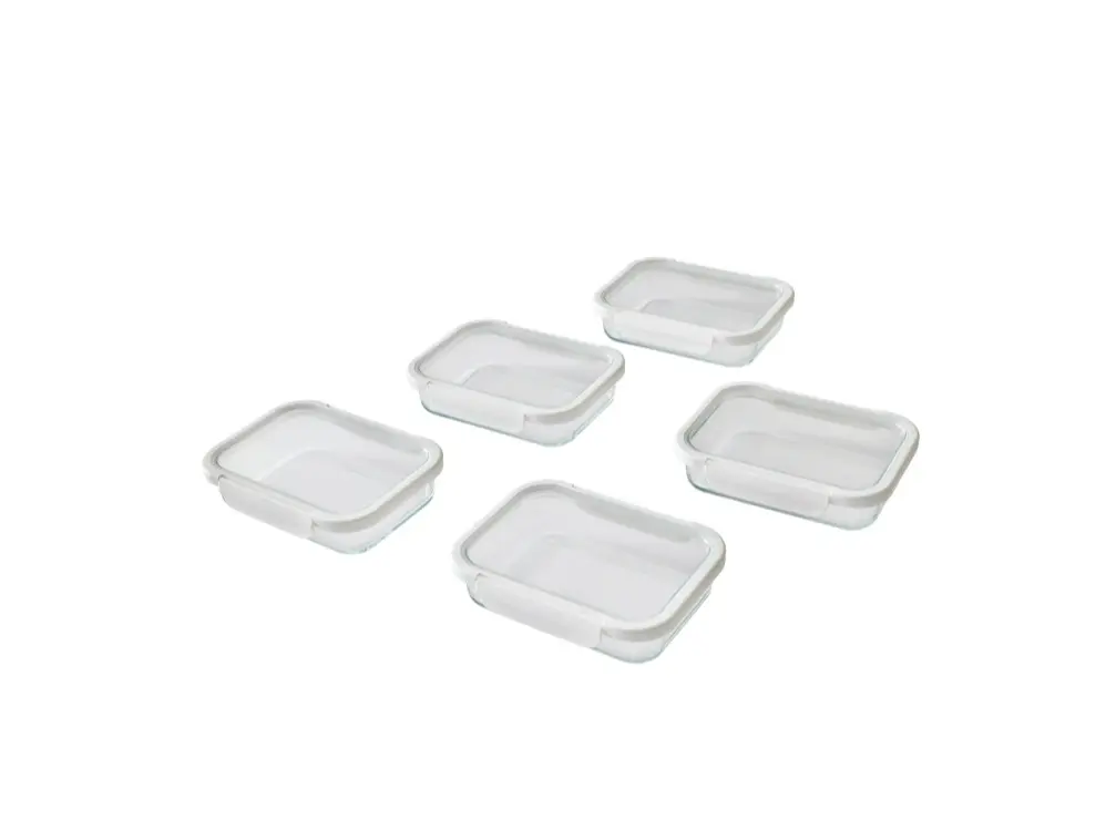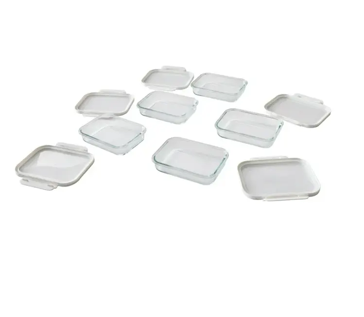 ·2.3Cup Rectangle Glass Design: Compact and lightweight, making it easy to handle and store. Aesthetic appeal that complements any kitchen decor.BHG 10pc (set of 5) 2.3 Cup Rectangle Glass Containers with Tritan Lids