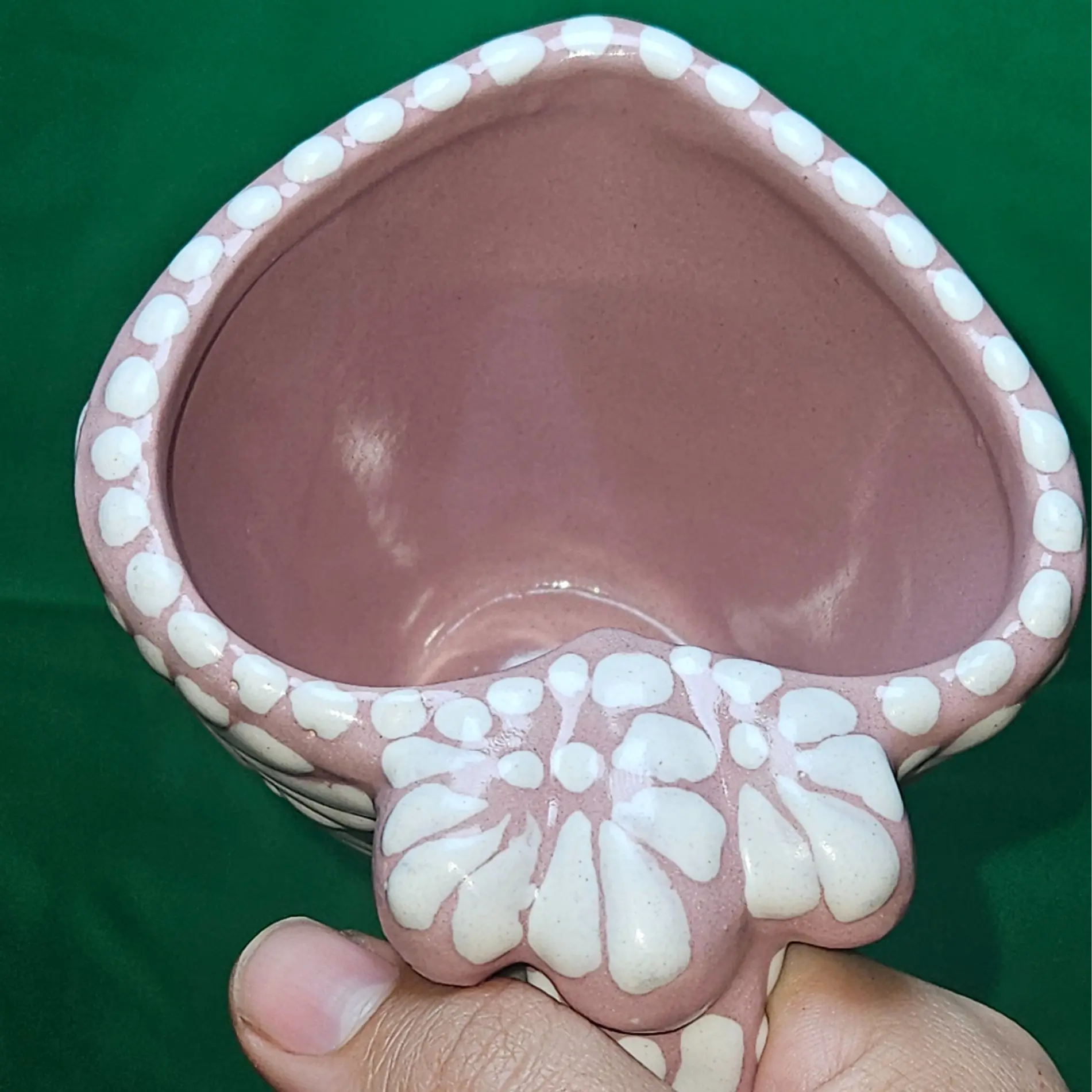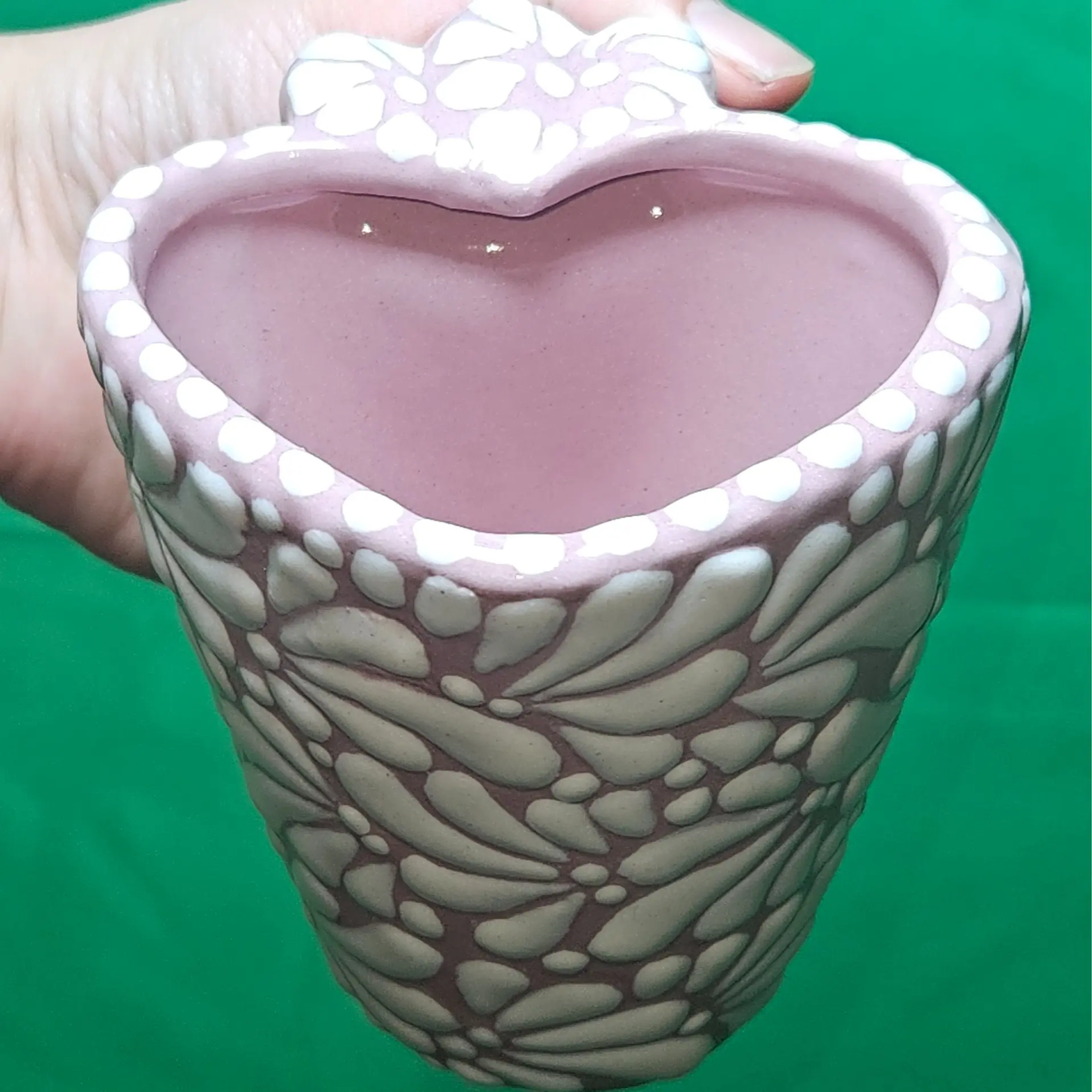 White Pink Top Heart Shaped Coffee Mug - Mid Sized - Mexican Hand Crafted - Talavera