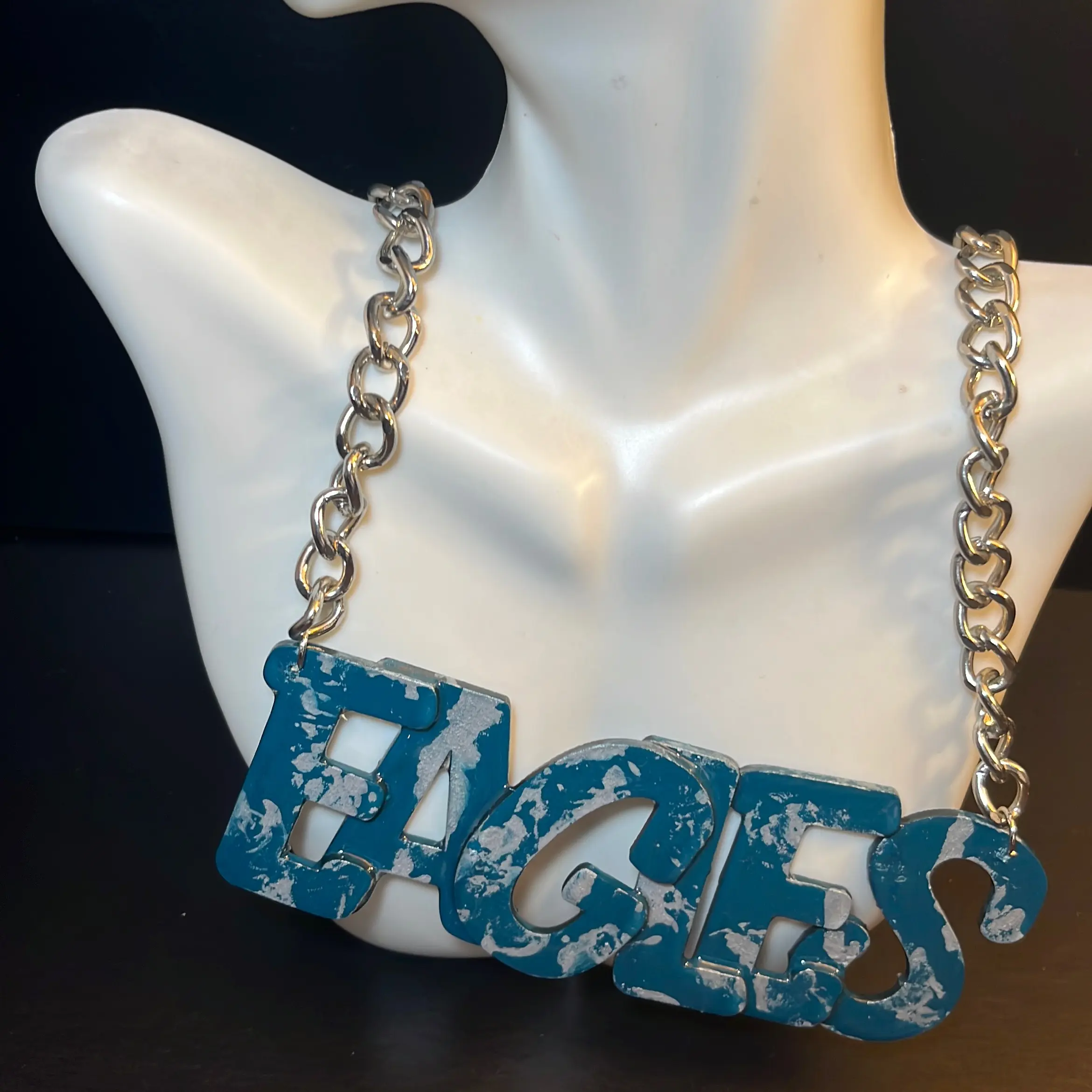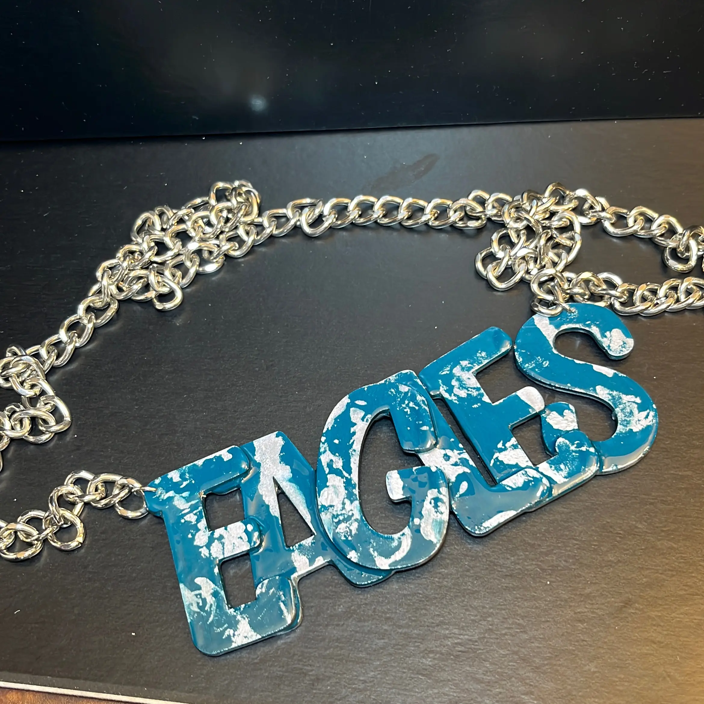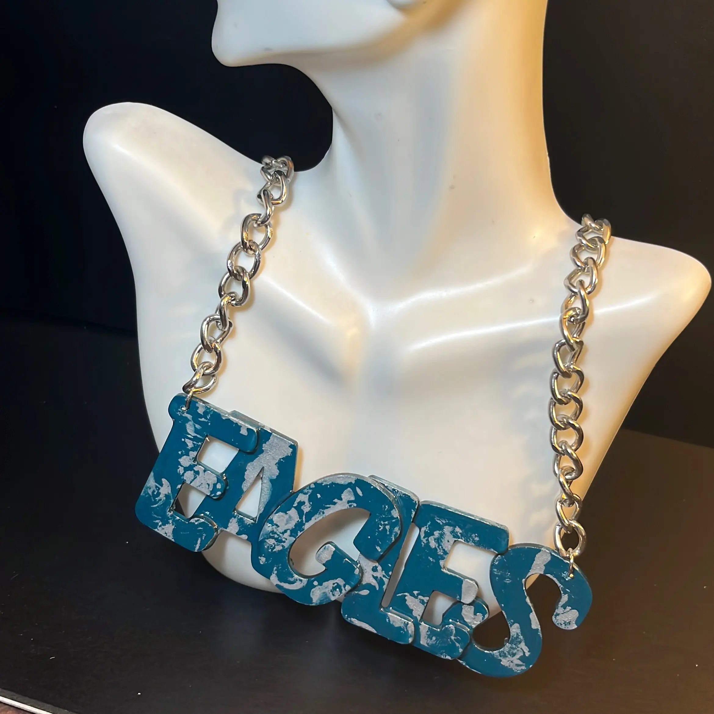 Fly High Like An Eagle Eagles Necklace - Unique Cuban Link Chain Design with Blue Elements and Gold Chain