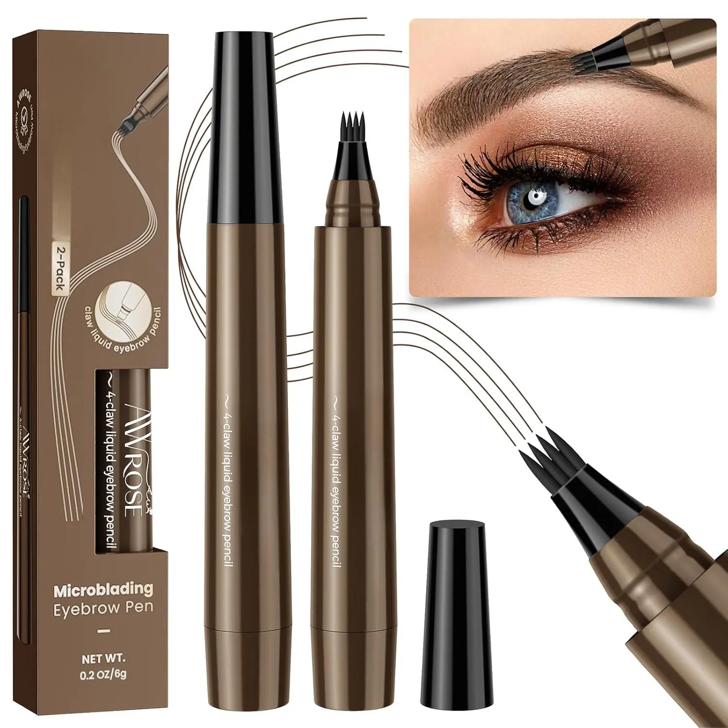 ·【All-Day Wear, Hassle-Free】Crafted with a premium waterproof formula, AWROSE microblade eyebrow pen stands up to humidity, sweat, and even the hottest summer days, ensuring your look stays intact up to 24 hours, keeps you looking vibrant and polished from dawn till dusk.