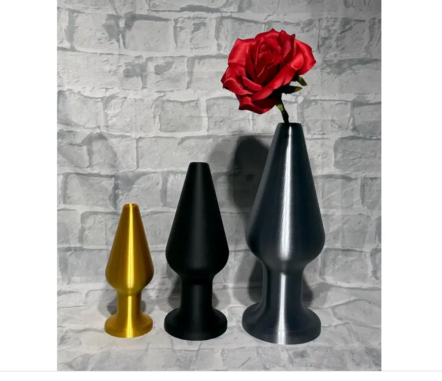 Plug Styled Vase, 6" or 8" or 10" Inch Tall Shiny Gold 3D Printed. Sexy, erotic artistic styled dry vase.... Really, its just a vase!