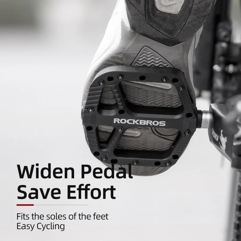 ·WIDER PLATFORM & LIGHTWEIGHT: 4.56" Wide and 5.35" Length ( L x W ) Extra large platform bike pedals will provide more secure on the pedals and hold your feet in place. Only 0.92lb/pair( 416g ). Lightweight pedals will save your energy during riding