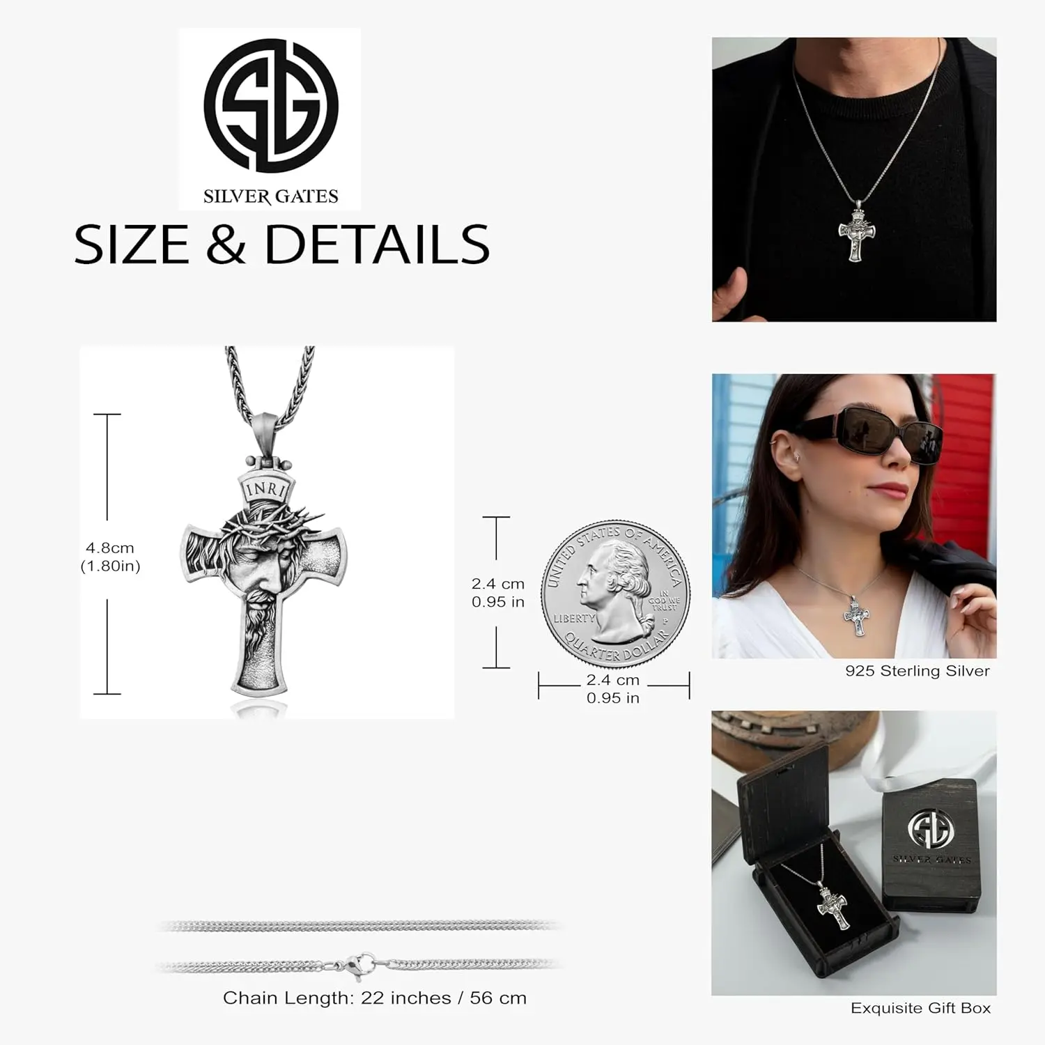 Experience timeless elegance and spiritual grace with our 925 Sterling Silver Cross Necklace. Expertly crafted from high-quality sterling silver, this necklace combines durability with a sleek, polished finish that shines beautifully in any light. The classic cross pendant, meticulously designed with smooth edges and refined detailing, symbolizes faith, strength, and style. The necklace is designed for everyday comfort, with a lightweight yet sturdy chain that drapes elegantly around your neck. Its adjustable length ensures a perfect fit, making it versatile for layering or wearing as a standalone piece. The hypoallergenic 925 sterling silver is nickel-free, ensuring a safe and comfortable wear, even for those with sensitive skin. Ideal for both men and women, this cross necklace is a thoughtful gift for baptisms, confirmations, birthdays, or any occasion that celebrates faith and love. Each piece comes in a premium gift box, ready for gifting. Elevate your style with a timeless piece that holds deep meaning and unmatched craftsmanship.