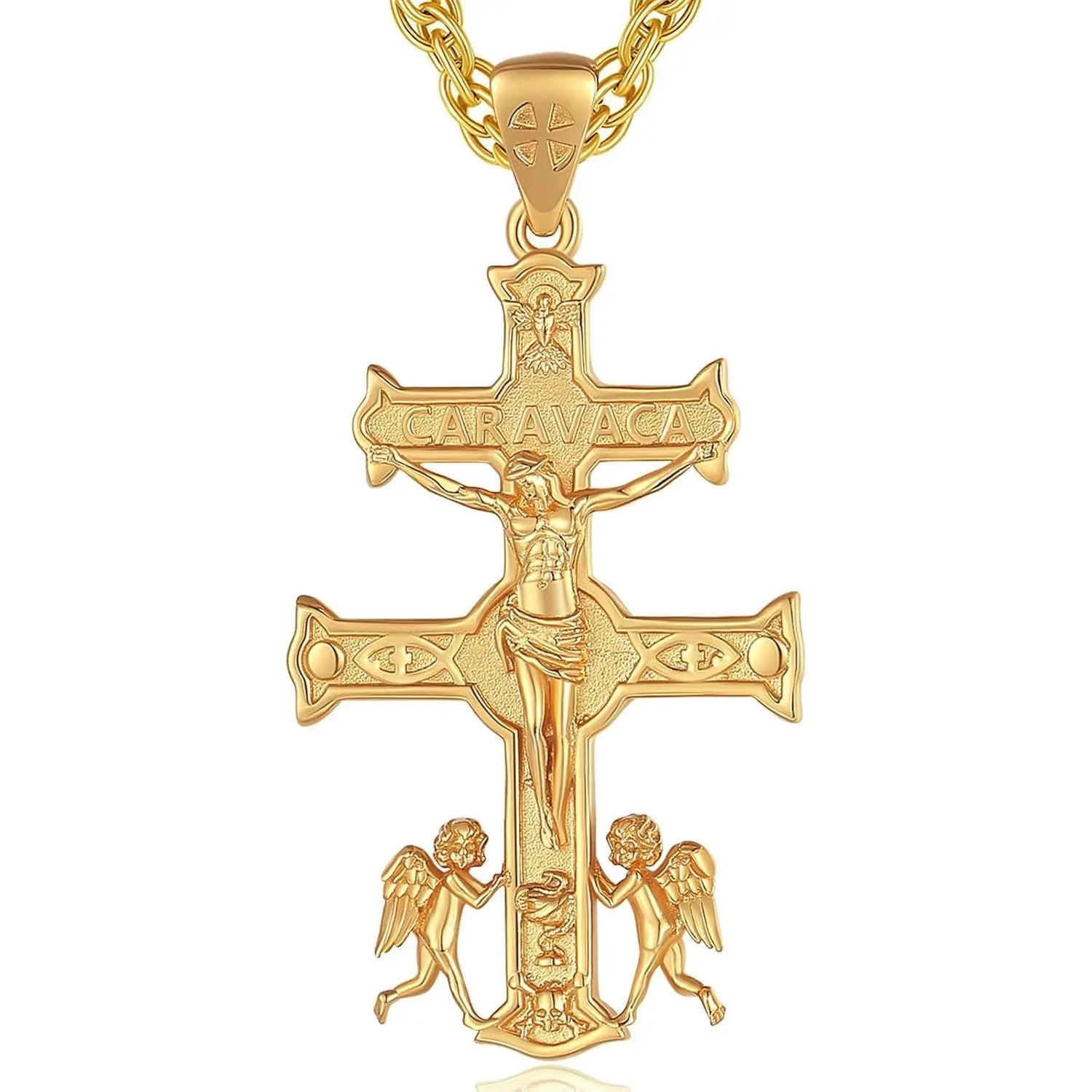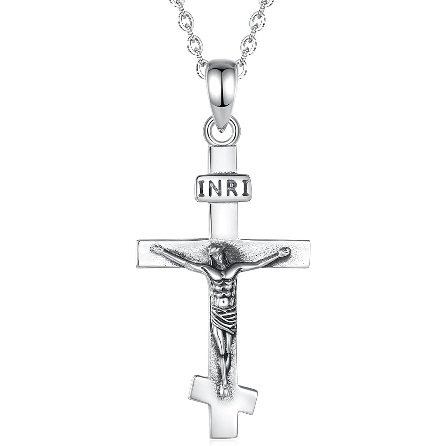 925 Sterling Silver Jesus Cross Necklaces Crucifix Orthodox Cross Caravaca for Women Men Religious Protection Gifts