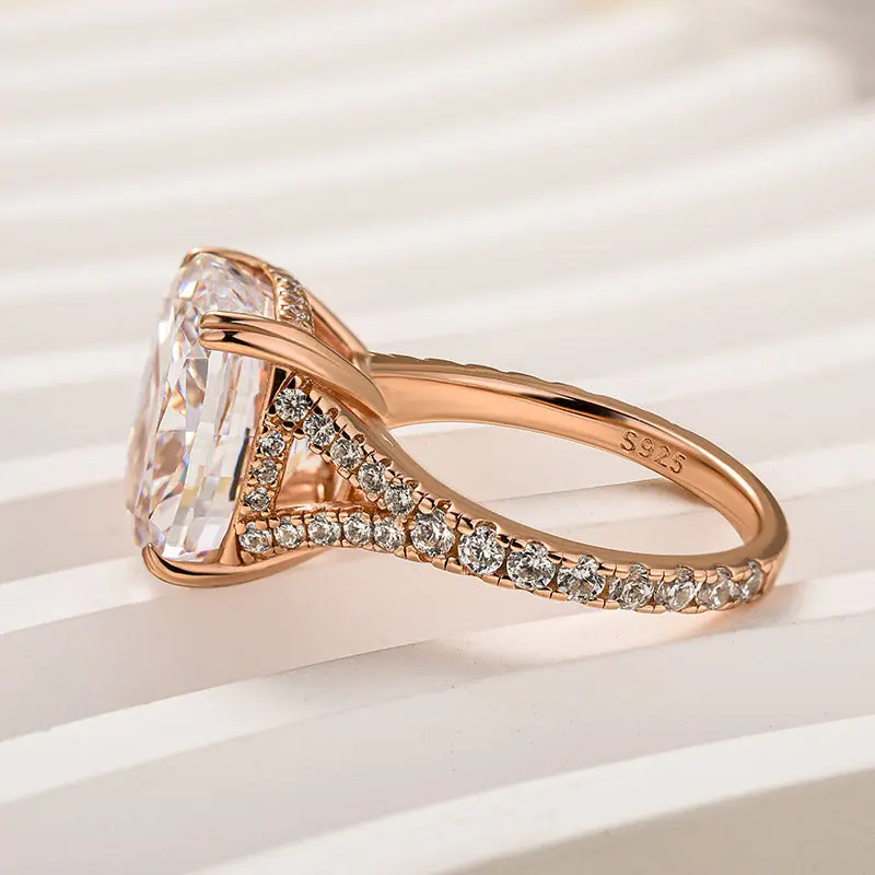 absolutely stunning. 😍 solid band. the double prong setting holds the stone in place well. it’s not too high where it gets snagged on everything. Side stones are set well (so far). my last ring they fell off in a few weeks. not from this vendor. that’s why i choose this particular one. very sparkly and vibrant. everyone compliments it. looks real!