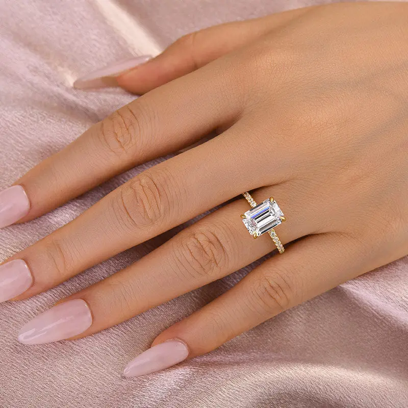 RODIFFY 3.5CT Synthetic Moissanite Rectangle Cut Engagement Ring In Sterling Silver