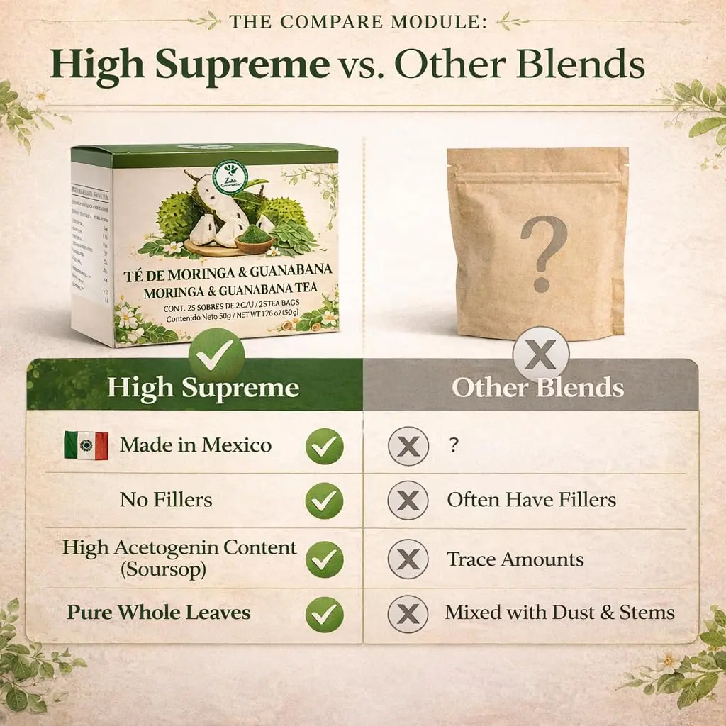 ✨ Elevate your daily routine with Moringa and Guanabana tea. This 25-bag pack offers a refreshing and energizing blend, perfect for hydration. Vegan and 100% natural, it supports a sustainable lifestyle. Crafted in Mexico, it ensures high-quality standards. Enjoy the natural goodness and health benefits it brings.