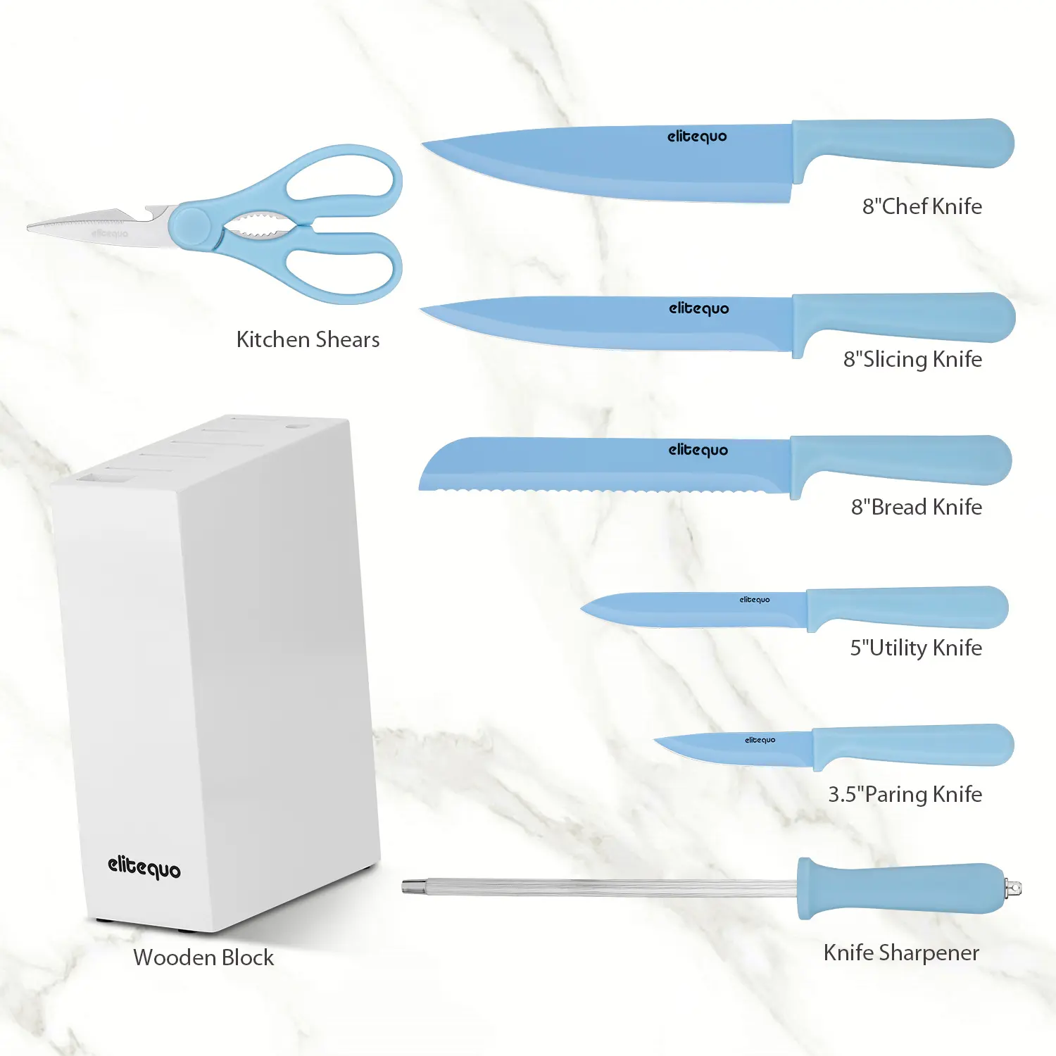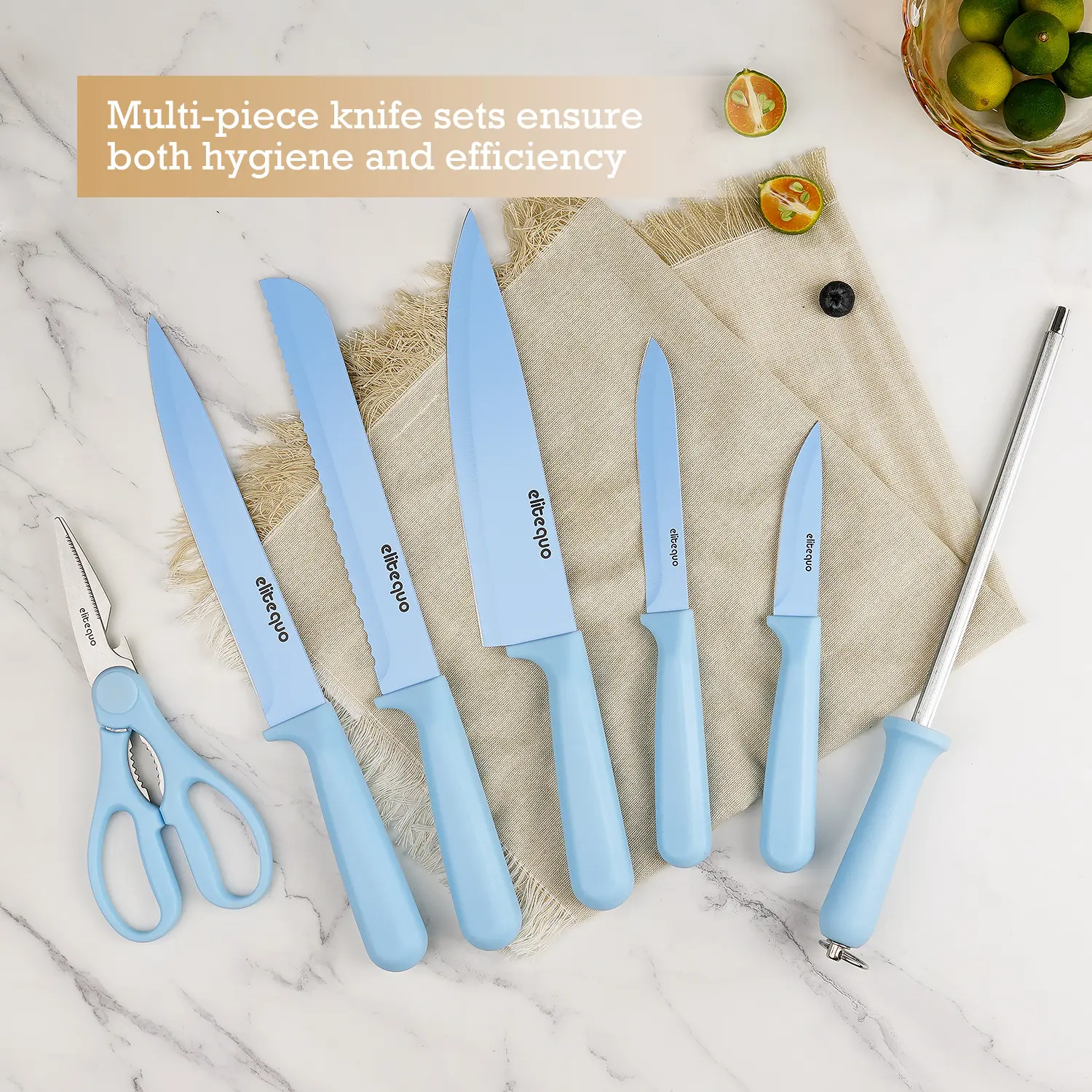 Upgrade your kitchen with the ELITEQUO 8 Piece Knife Set and enjoy modern culinary excellence.