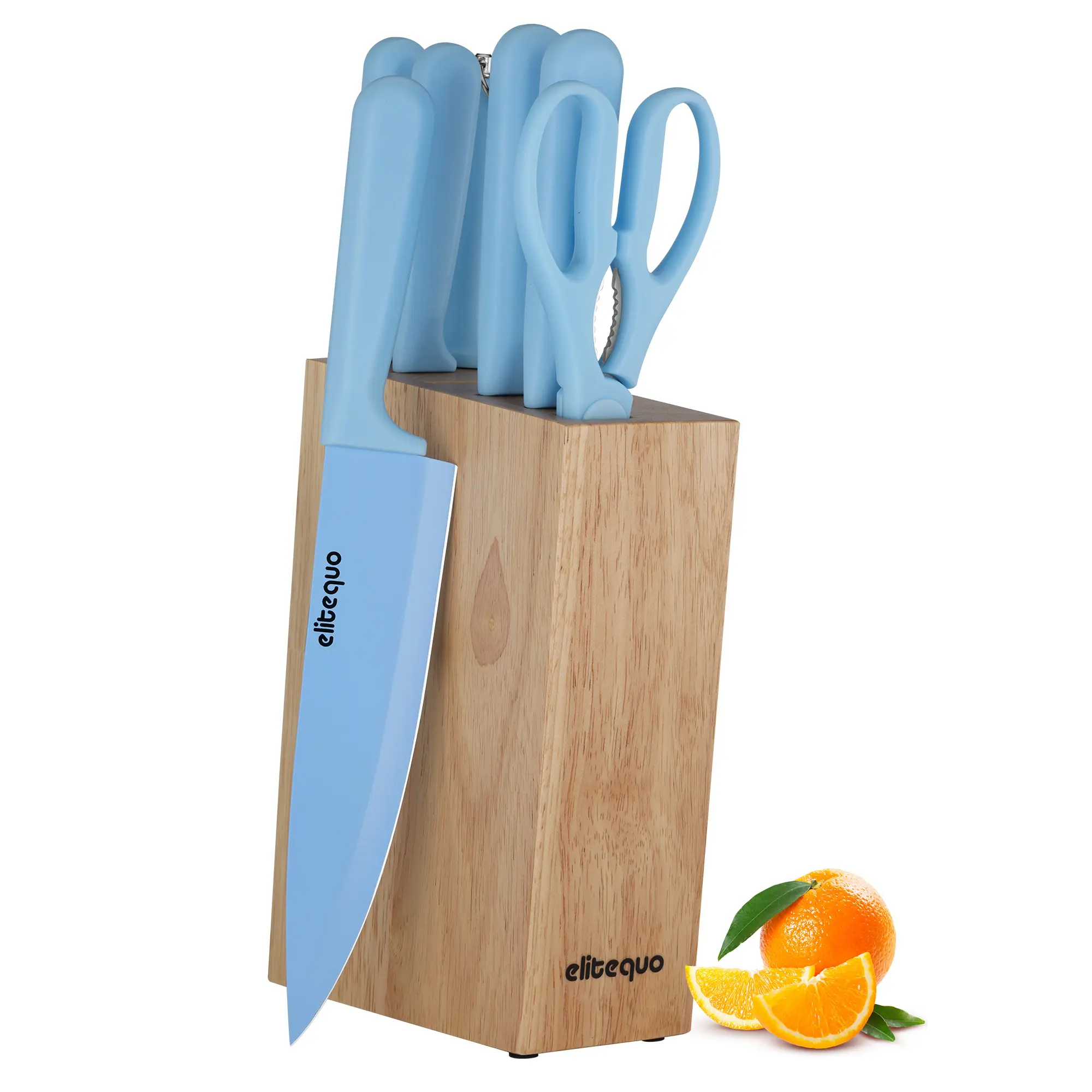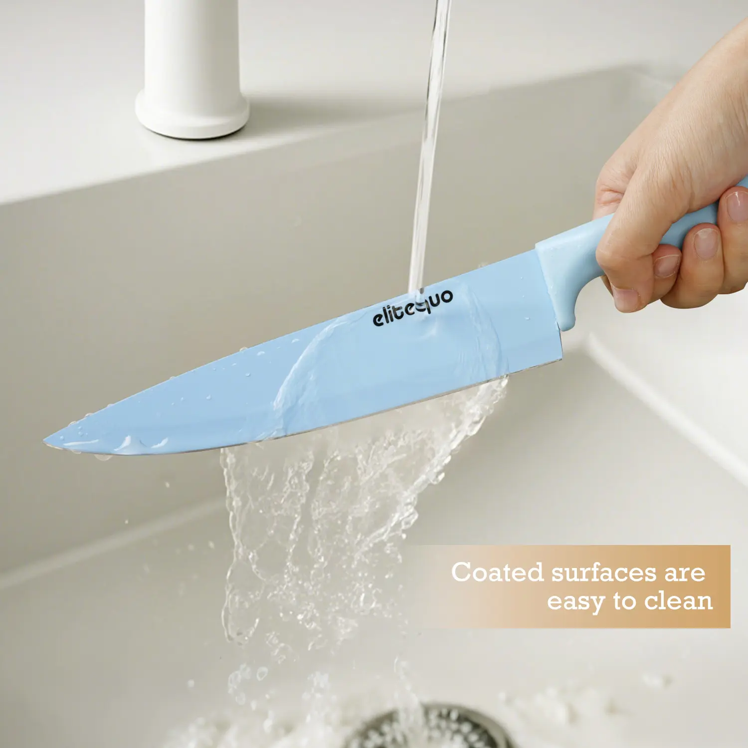 ·Elegant Blue Coated Blades: The sleek blue coating not only enhances the aesthetic appeal of your knives but also provides a practical surface for easy cleaning.
