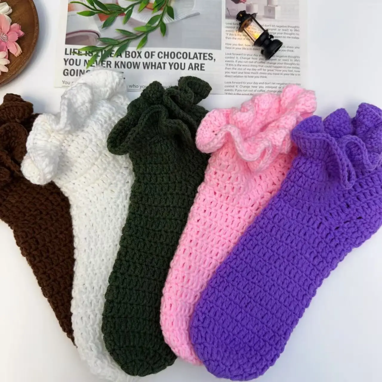 Embrace comfort and style with these cute knitted lace socks, perfect for any occasion.