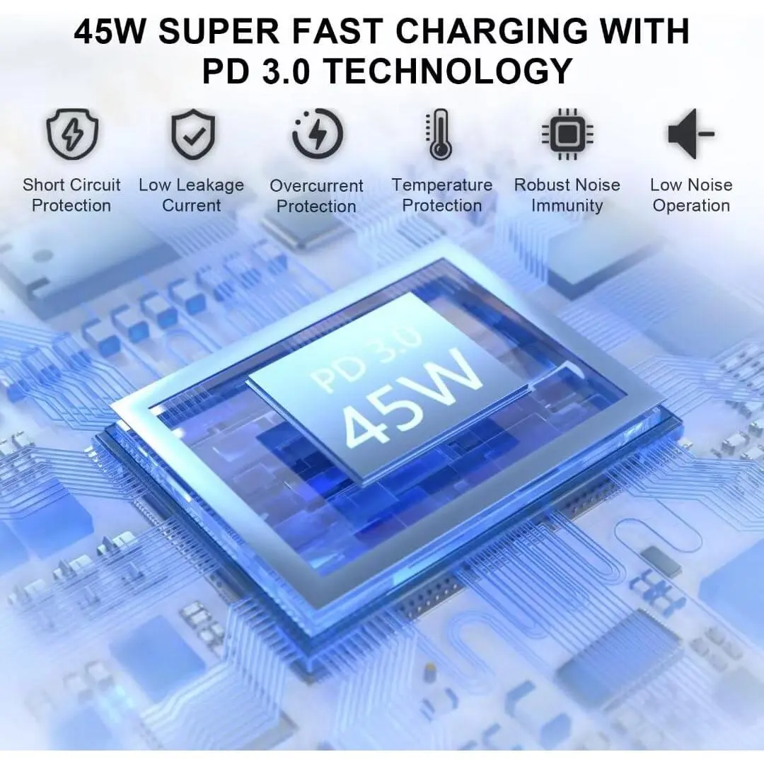 [45W Super Fast 2.0] 45W wall charger uses the PD 3.0, AFC, FCP protocol to super fast charge devices. It only takes 30 minutes to charge the S25 phone from 0% to 80%. The speed is visible to the naked eye. It is 10% faster than the official EP-T4510, and the speed is 50% faster than the 25W