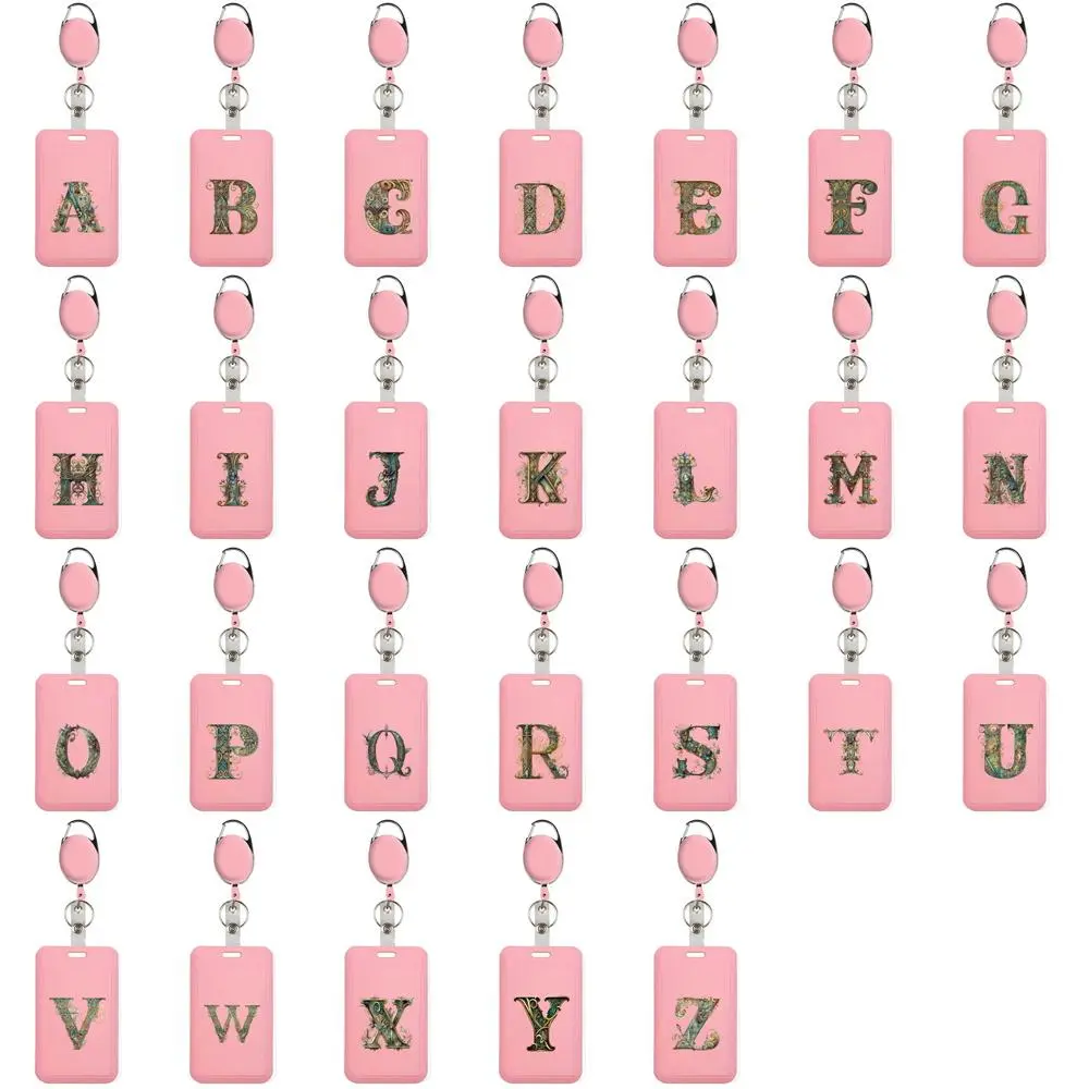 Letter Pattern Scalable ID Badge Holder, Creative Employee Card Container, Fashion Staff Card Holder, Durable Case Protector Pouch, Name Card Organizer, Retractable Badge Holder