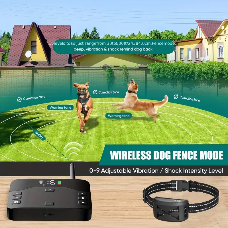 Wireless Dog Fence System/Receiver, 2 In 1 Wireless Dog Fence&Training Collar, Remote Wireless Dog Boundary Containment System, Dogs Training Collar