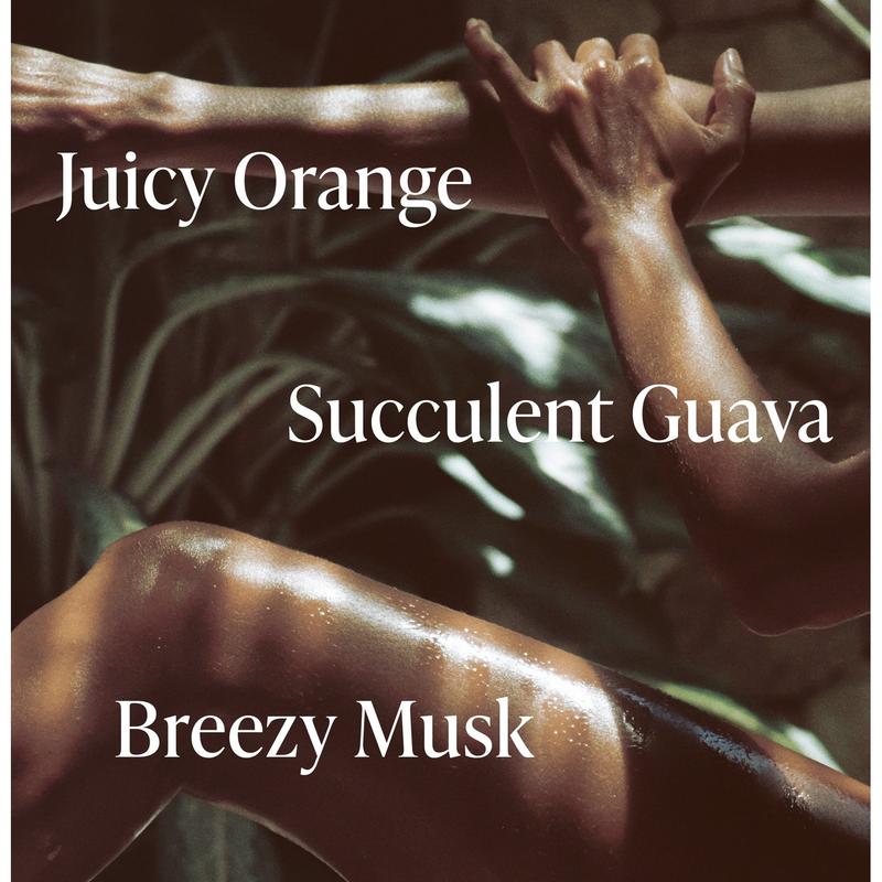 Scent: Orange & guava forward with a sweet woody base.