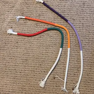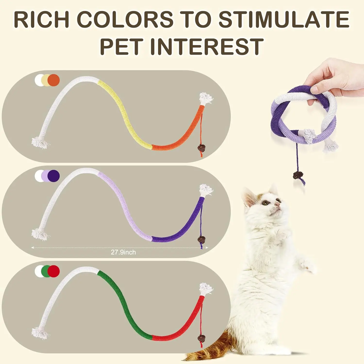 ćPerfect GiftćYou will receive 3 x Ā Catnip Rope Toys. They come in 3 different color combinations: orange/yellow/white combo, red/green/white combo, dark purple/light purple/white combo.Size: 27.9 Inches, whether you are standing or sitting, you can easily tease your cat and interact happily with it.