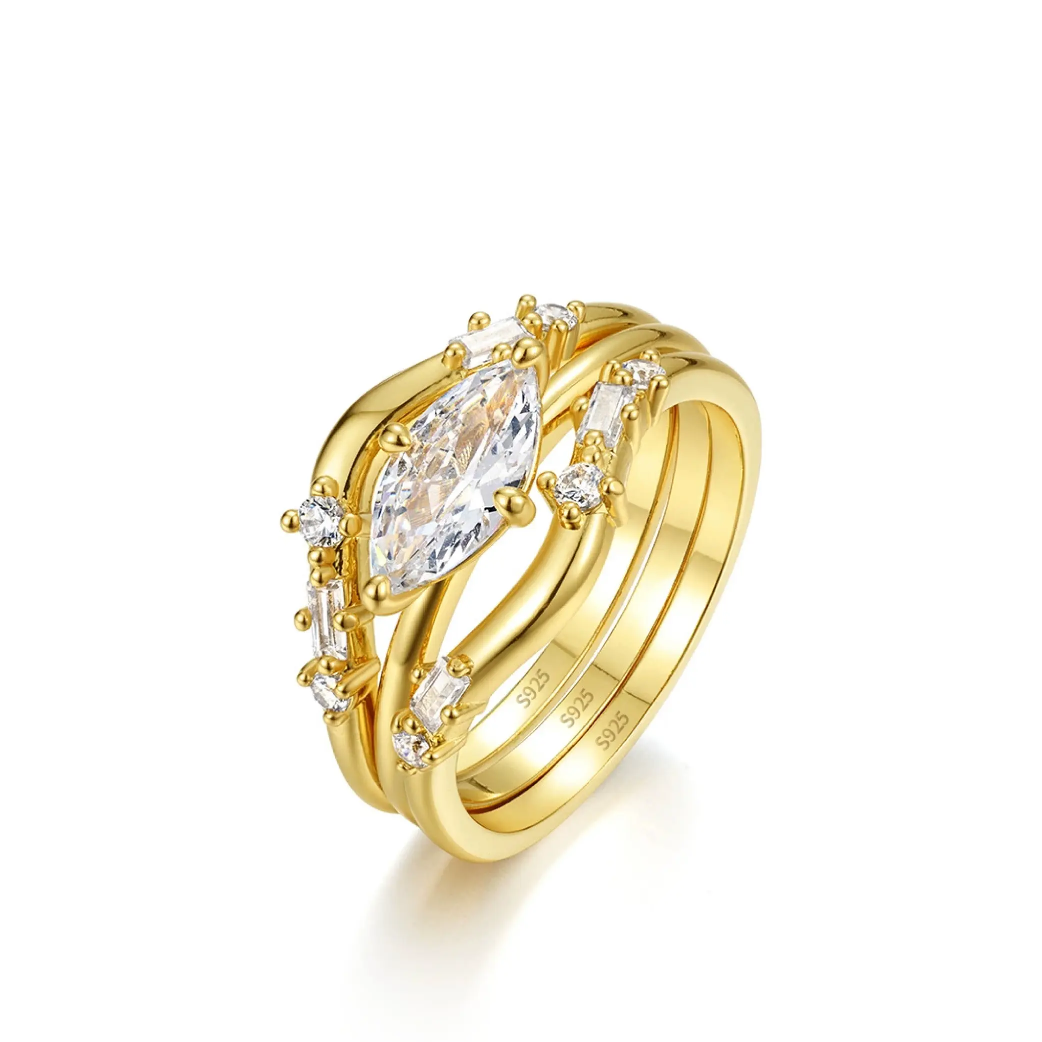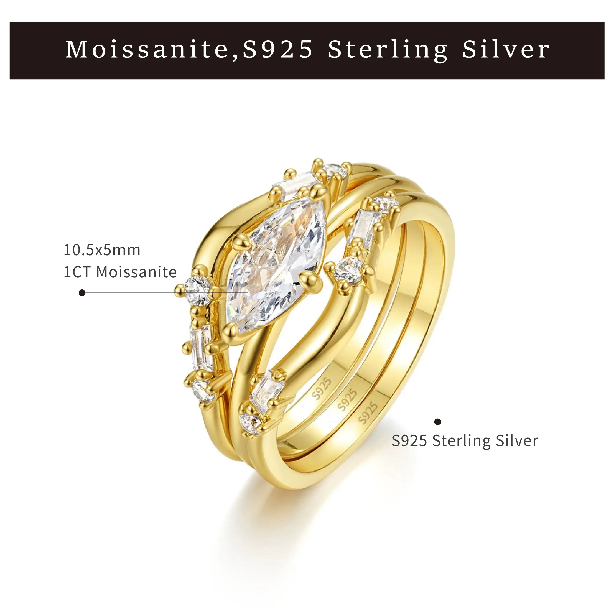 Moi Mart Luxurious Three-in-One Marquise Cut Synthetic Moissanite Ring, Stackable Ring Set, 925 Sterling Silver Jewelry, Perfect gift for Her