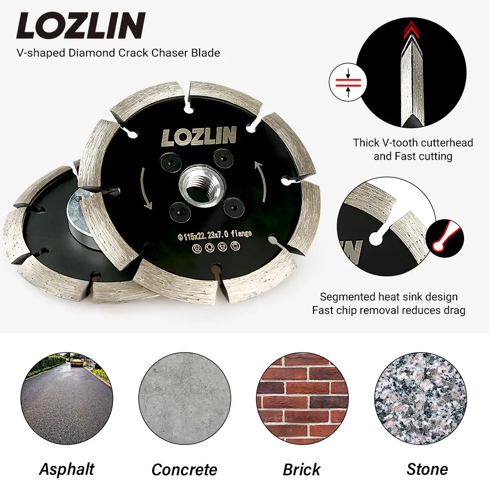 ·V Cutting Blade: Ideal for cutting through stone, concrete, and other materials, making it suitable for a range of tasks.